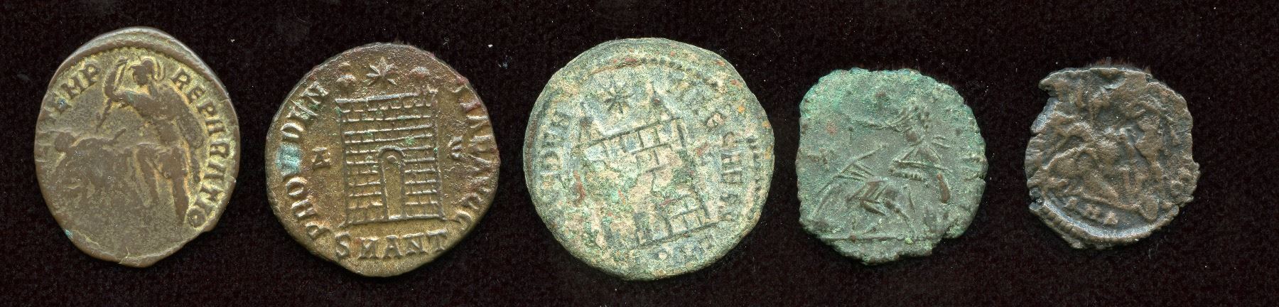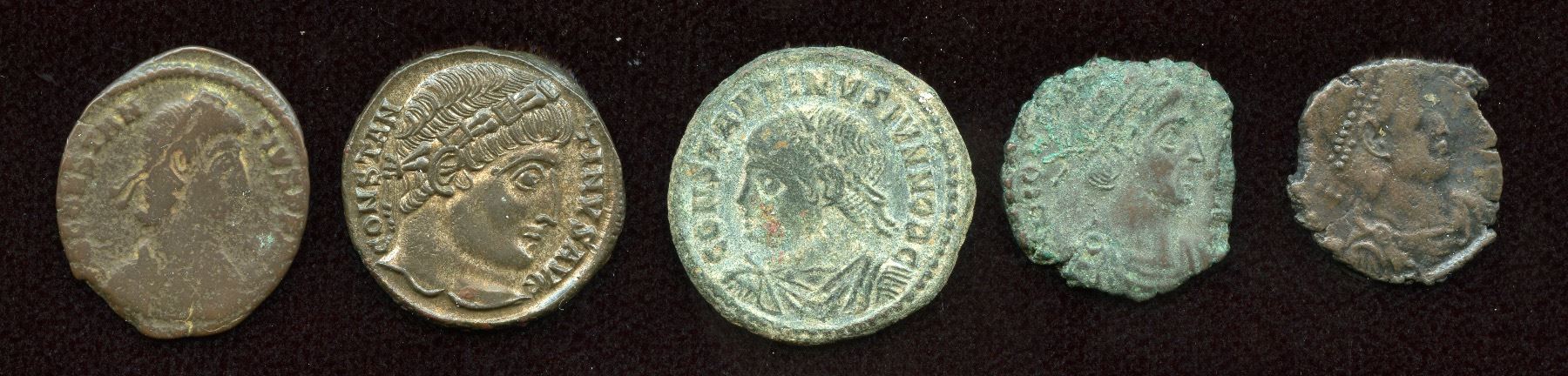 AE3 (3) & AE4 (2) coins of Constantine & family members - including AE3 Constantine RIC 71; EF. 5 Pcs.
