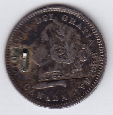 Countermarked Coin J.E. GAGNON within rectangular cartouche on Canada Victoria ten cent love token; hallmark is on obv., WB-437. The mark of Jean Gagnon, Quebec City jeweller, ca. 1888.