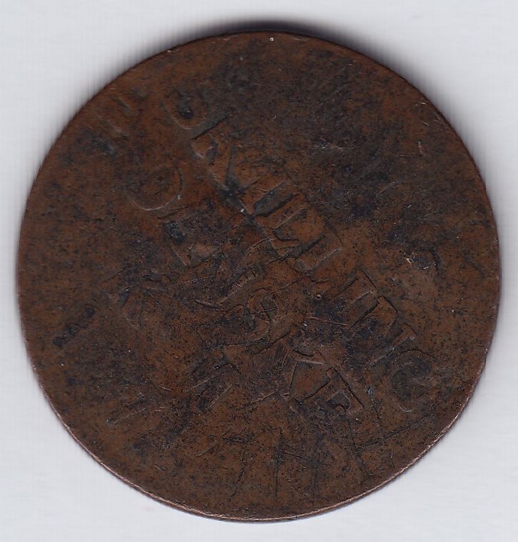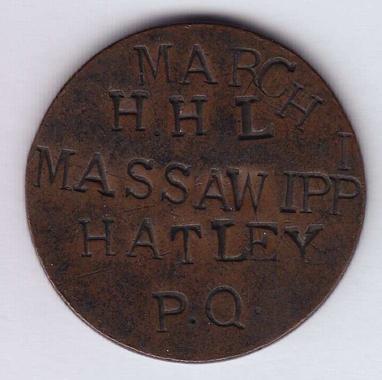 Countermarked Coin MARCH 1 / H.H.L / MASSAWIPPI / HATLEY / P.Q. counterpunched on filed obv. of Danish skilling, 1771, WB-459.