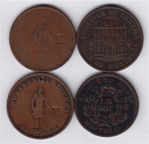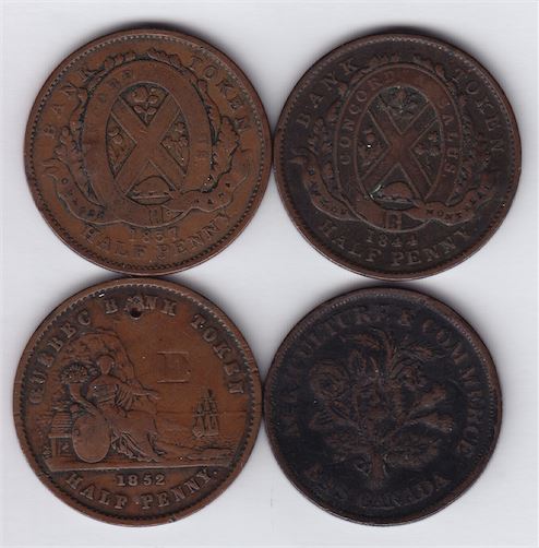 E on obv. & rev. of Quebec Bank Halfpenny, 1852, BR 529, WB-367;