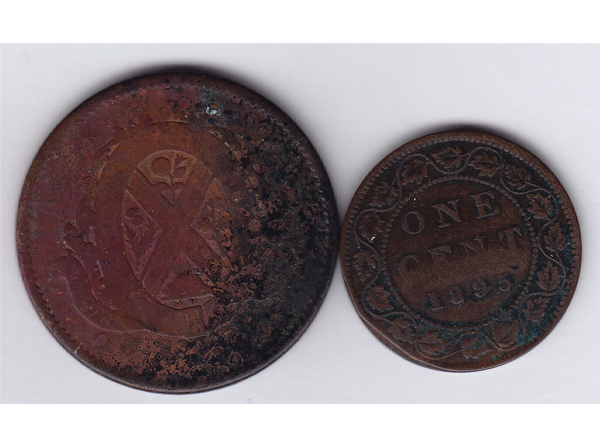 W. FENETY on obv. of Canada Cent, 1895, WB-399. Rulau Misc.; Brunk unpub. 2nd ed., 13955 (this coin). 2 Pcs.