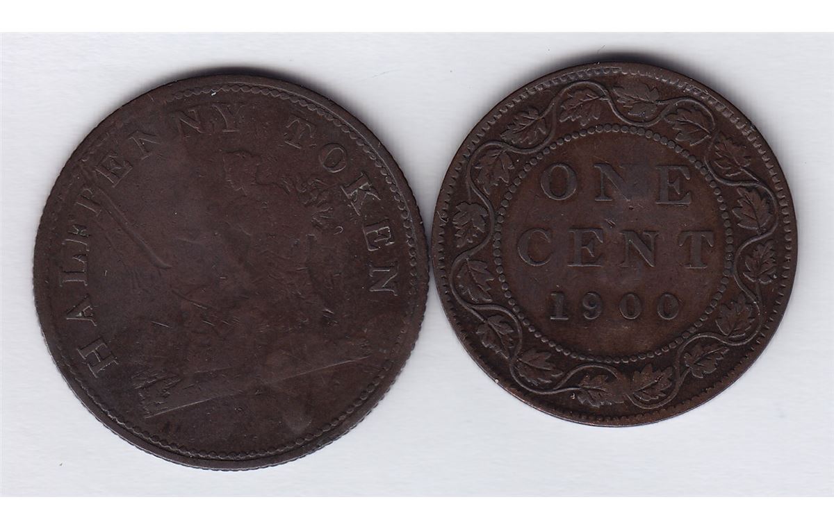 S. HOLMES on obv. of Canada Cent, 1900, WB-489. Brunk unpub. 2nd ed., 19878 (this coin). 2 Pcs.