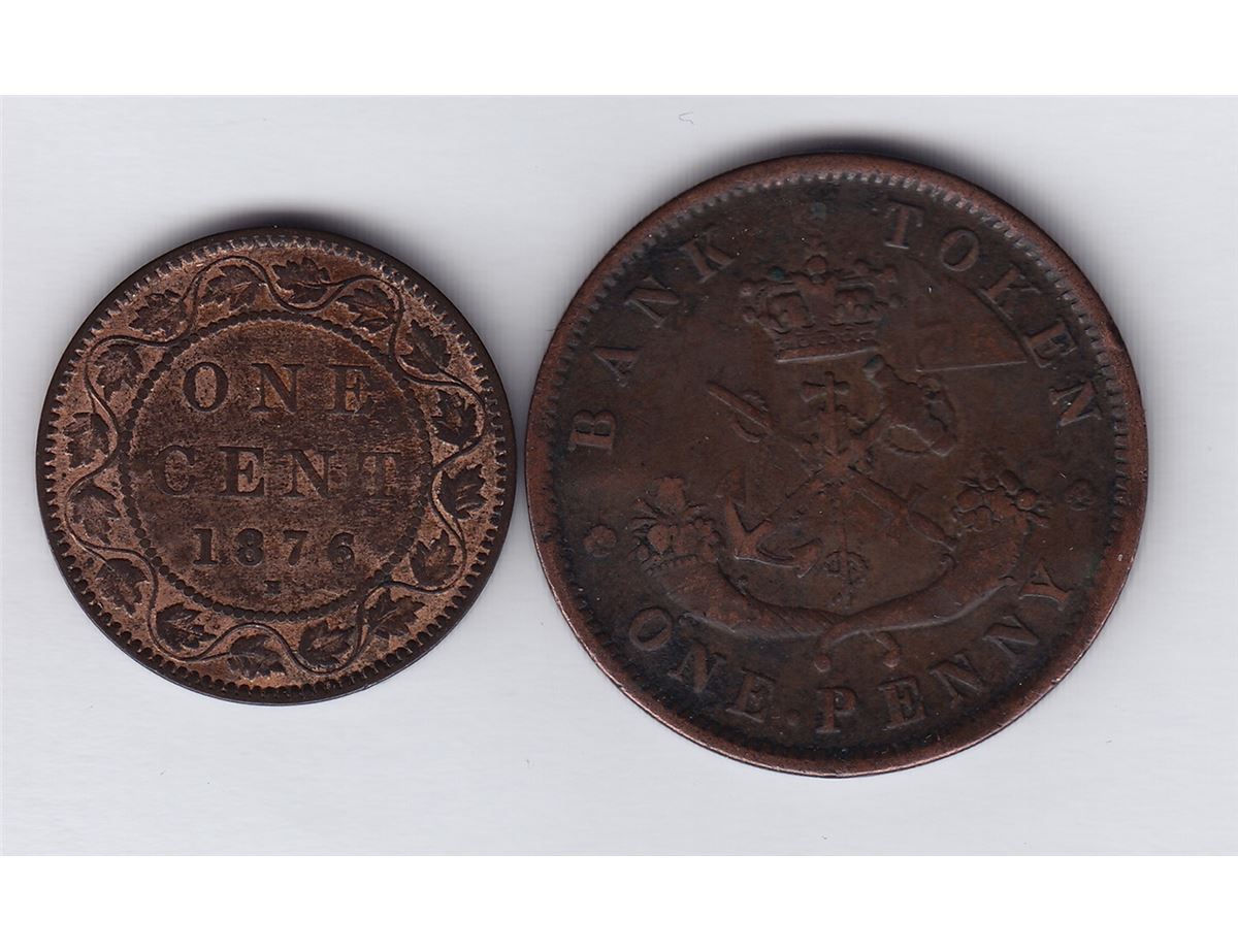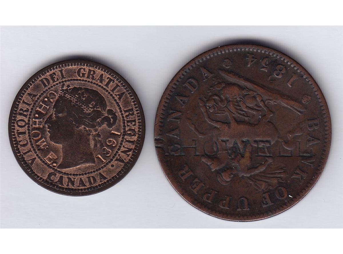 R.H. HOWELL on obv. of Bank of Upper Canada Penny, 1854, BR 719, Unpublished. 2 Pcs.