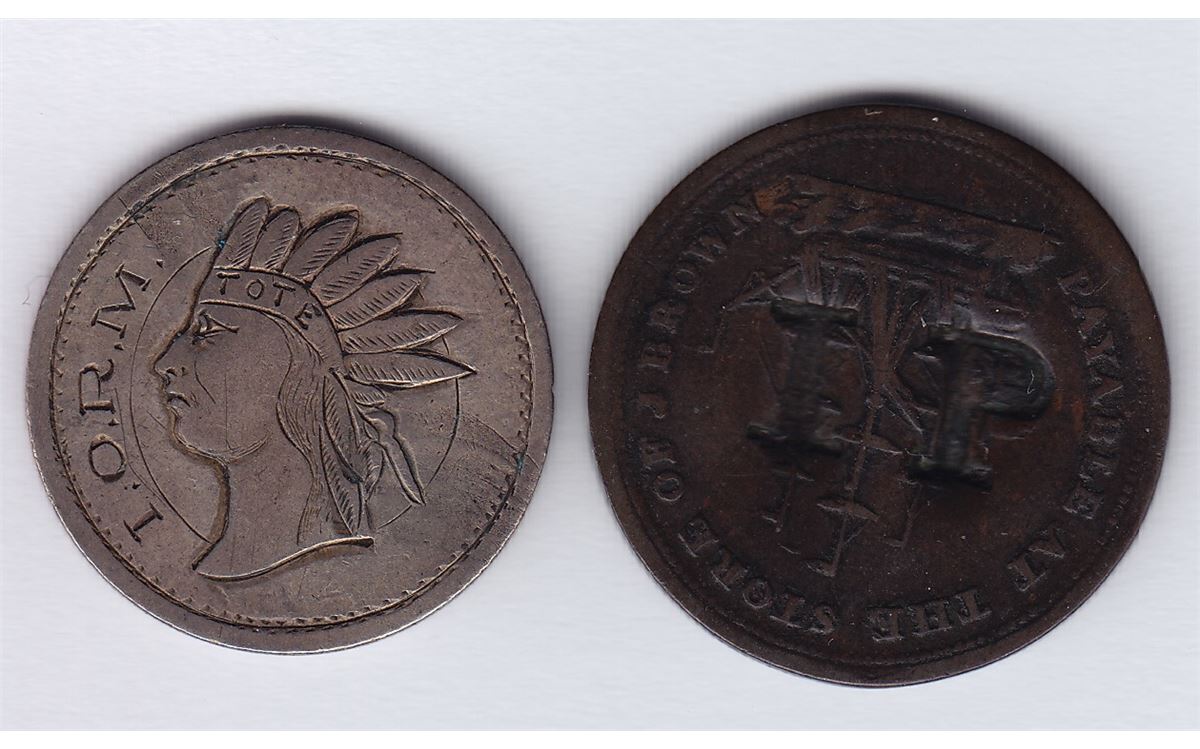 I P on obv. of John Brown Halfpenny, BR 896, WB-511. 2 Pcs.