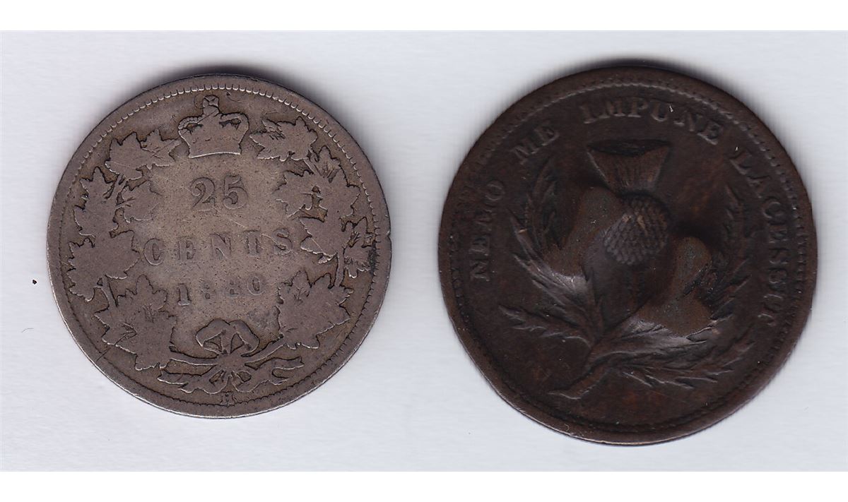Countermarked Lot I. O. R. M. on obv. With bust of grand Indian of Canada Twenty Five Cents, 1880, Unpublished. International order of Redmen;