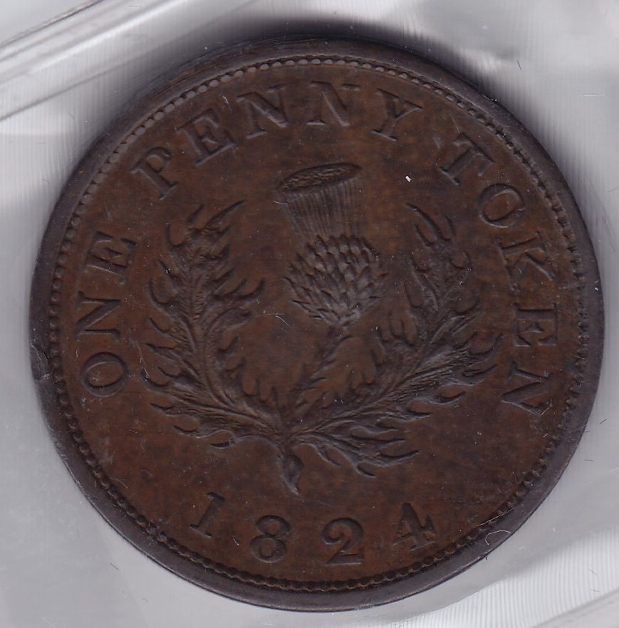 Courteau 261 - Co 261, Br 868, CH NS-2A2, 1824 One Penny, ICCS AU55. Early die state.