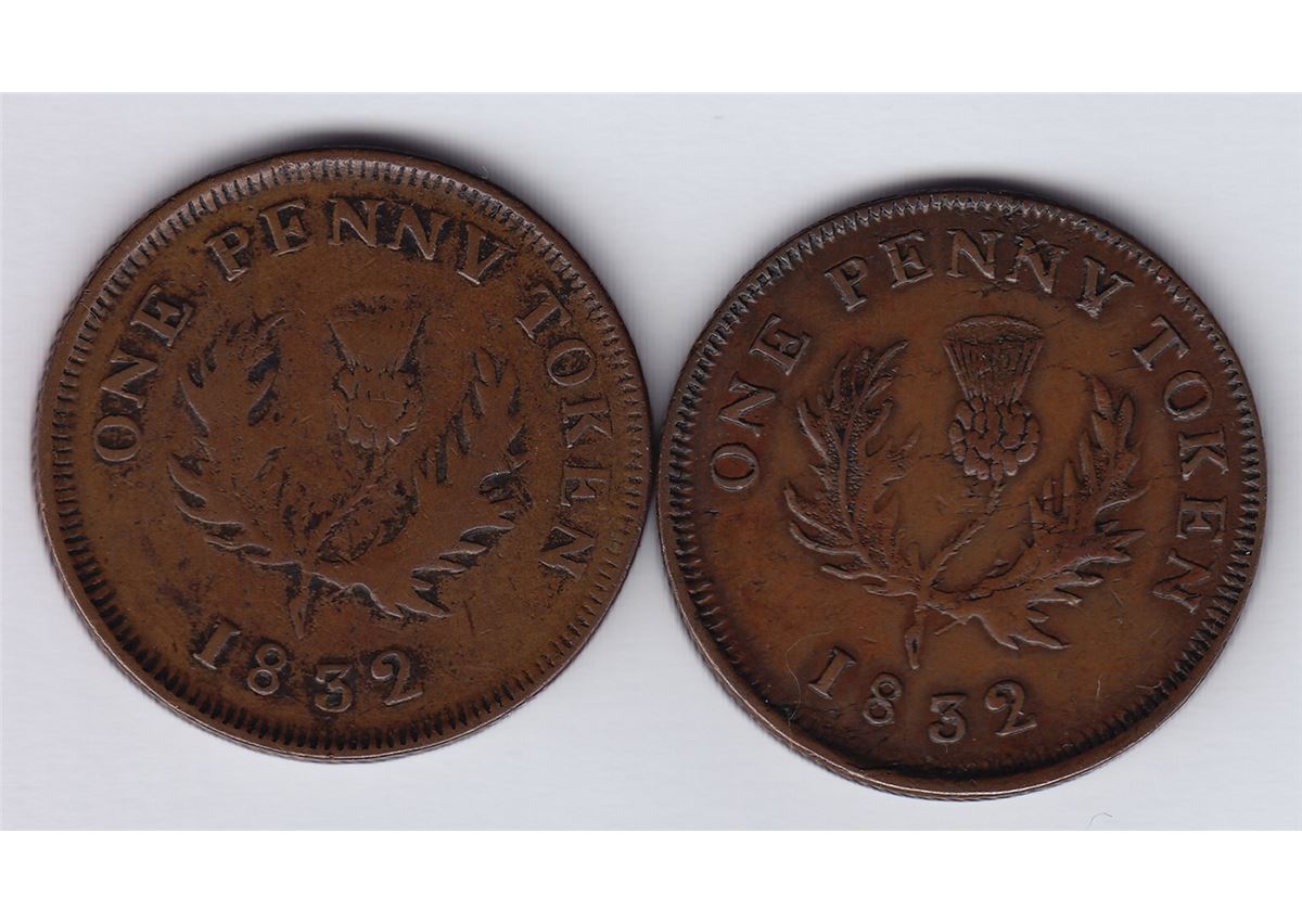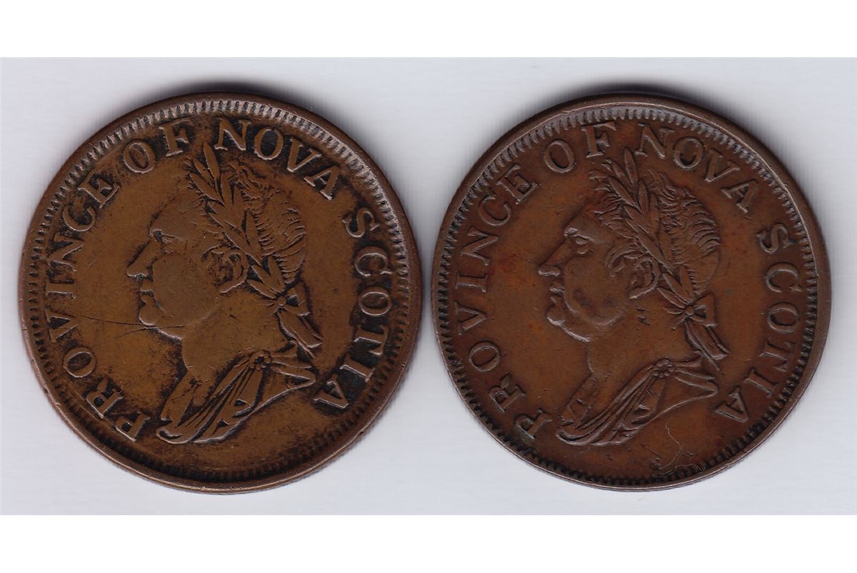 Courteau 286 Lot of two: Courteau 286, BR 870, CH NS-4A1, 1832 One Penny, VF. Missing the upper part of the C in Province; Courteau 286, BR 870, CH NS-4A1, 1832 One Penny, EF. An above average example. 2 Pcs.