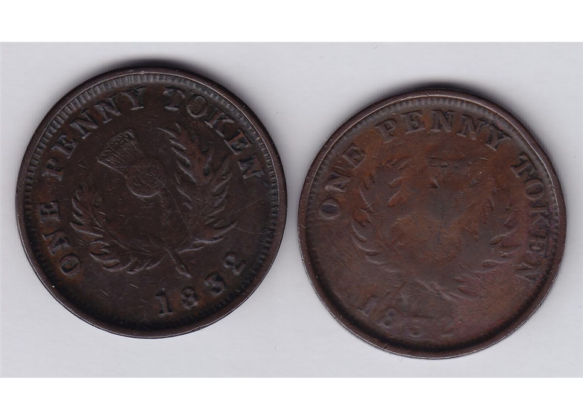 Courteau 287 - Lot of two Co 287, CH NS-4A2, 1832 One Penny, F-VF. 2Pcs.