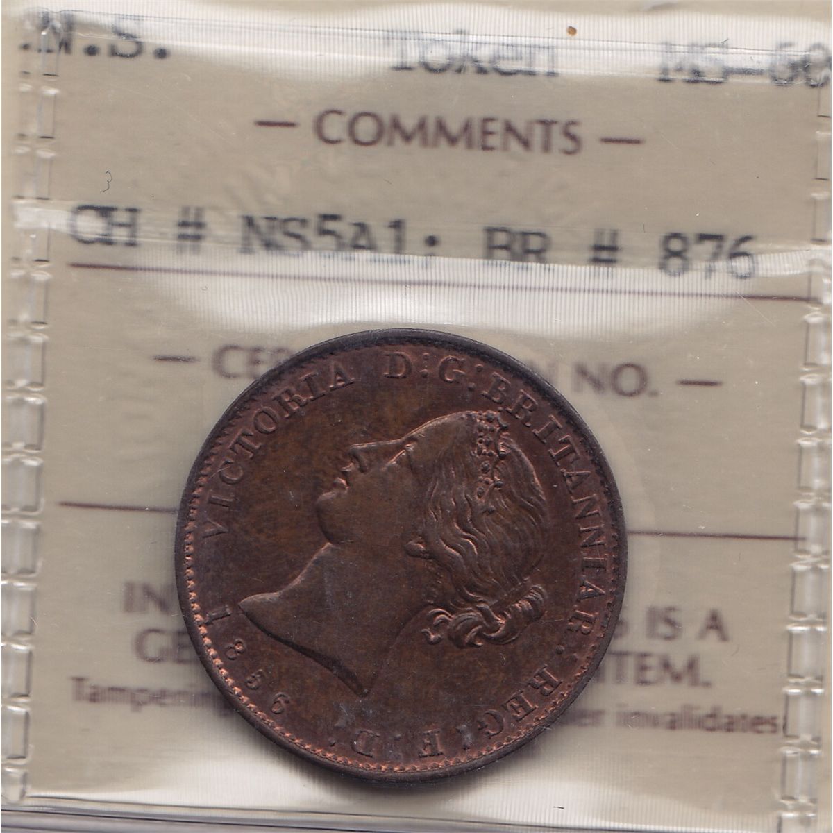 Courteau 315 - Co 315, Br 874, CH NS-5A1, 1856 Halfpenny, ICCS MS60.