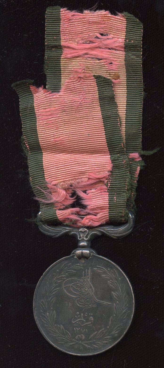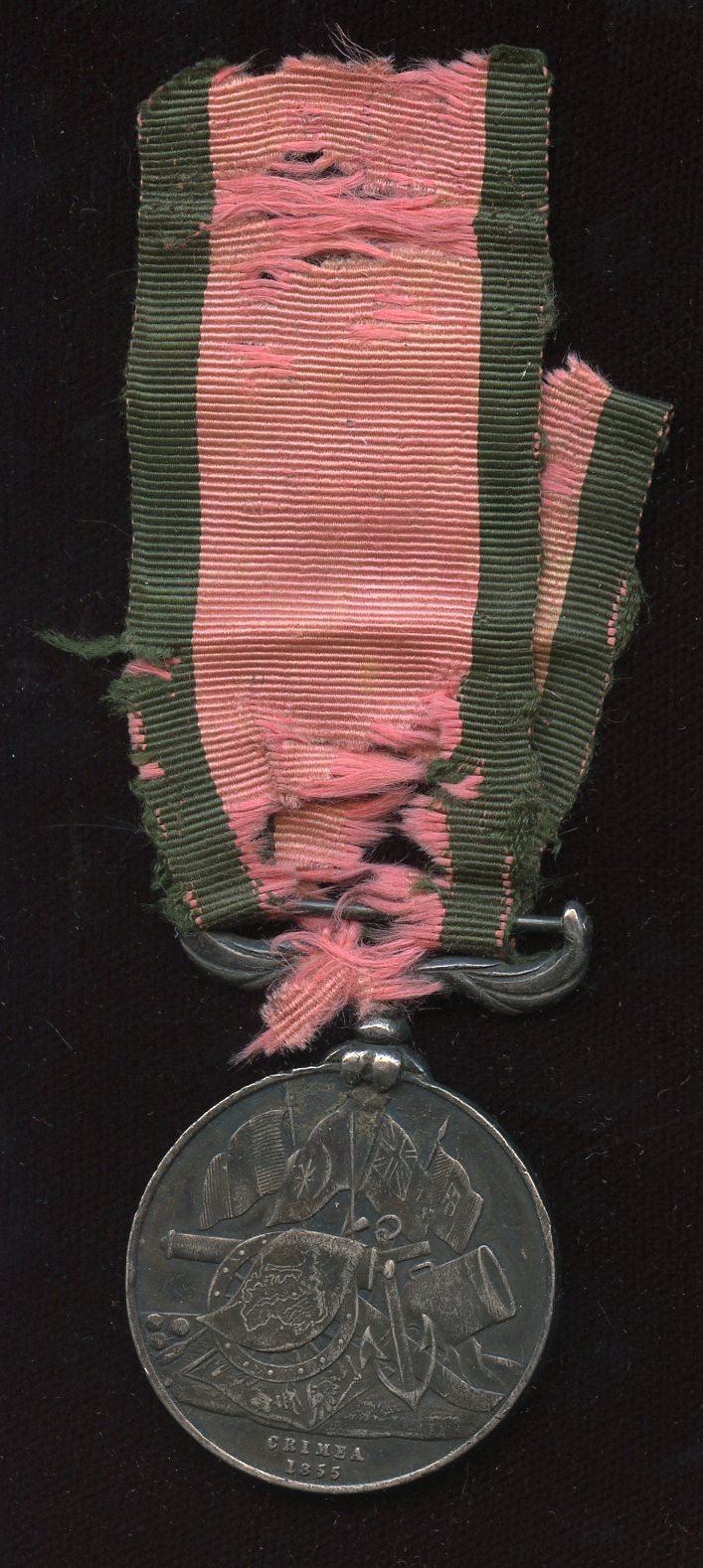British issue ("Crimea" in exergue). Impressed "1905 4th." on edge. Pte. Hugh Devlin was a member of the 4th Light Dragoons, his Regimental Number was '1905'. The 4th LD participated in the 'Charge of the Light Brigade', however Devlin was not a charger. EF, with light contact marks.