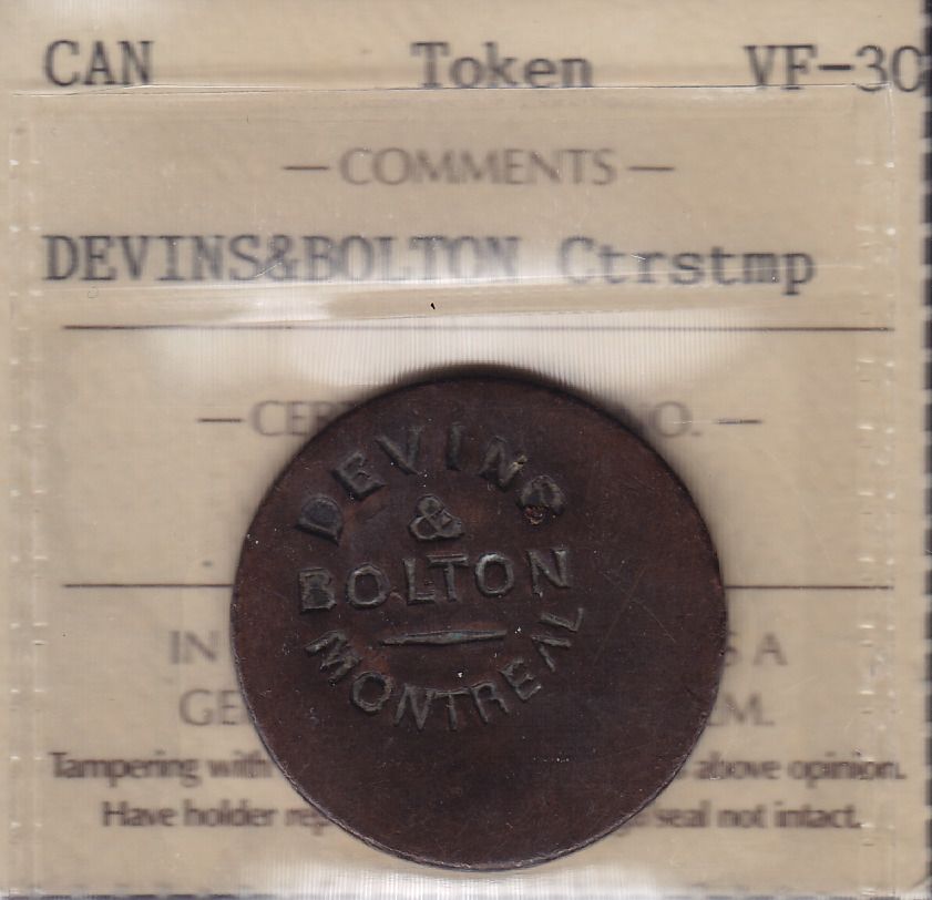 Devins & Boulton Countermarked Token. Host coin Bouquet Sous token. ICCS VF-30 CH MT-2B2.