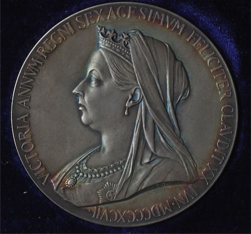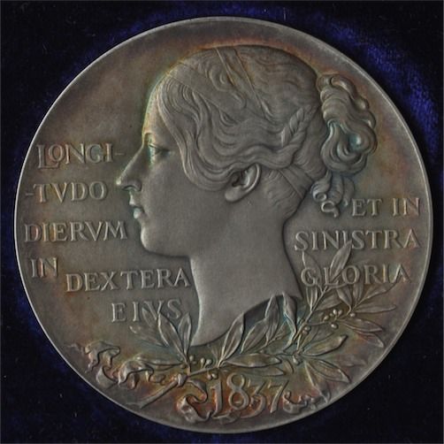 AR 56mm by G.W. de Saulles (after T.Brock & W.Wyon) Veiled head, crowned. Rev. Young head. Eimer 1817, BHM 3506, in case of issue. Toned EF.