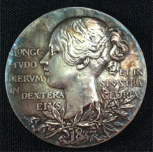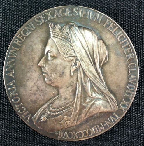AR 56mm by G.W. de Saulles (after T.Brock & W.Wyon) Veiled head, crowned. Rev. Young head. Eimer 1817, BHM 3506, in case of issue, case damaged, a few scratches. EF.