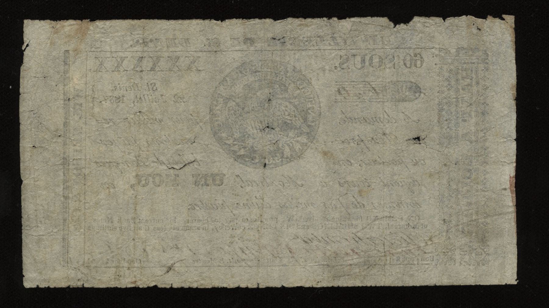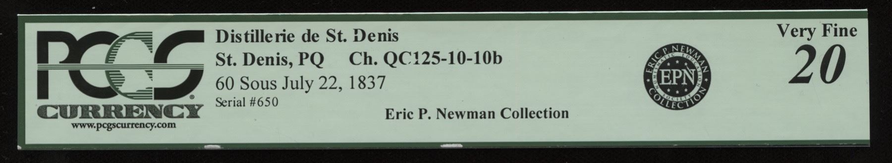 Un Ecu, 30 Pence, 22 Juillet, 1837, Ser#650, QC-125-10-10b, accompanied by a PCGS certificate VF20, (small internal tears.) Ex: Eric P. Newman Collection.