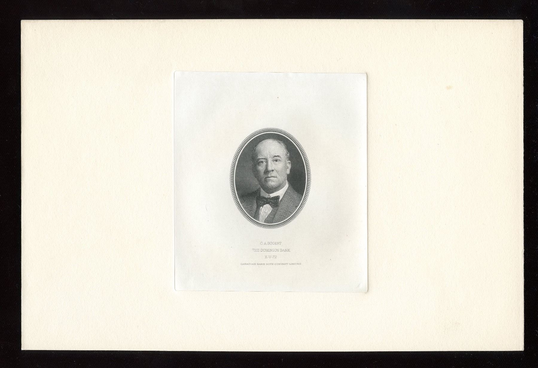 A. W. Austin, CBN X-V-71, and C. A. Bogert, CBN X-V-72. Both are mounted on 6 x 9 inch cards. Lot also includes the source photograph used for Mr. Bogert's portrait, reduced to the same size as it appears on the notes. The back of the photograph bears the name of engraver E. Loizeaux, and the order number, O-724, in pencil. Three items which would enhance a display.