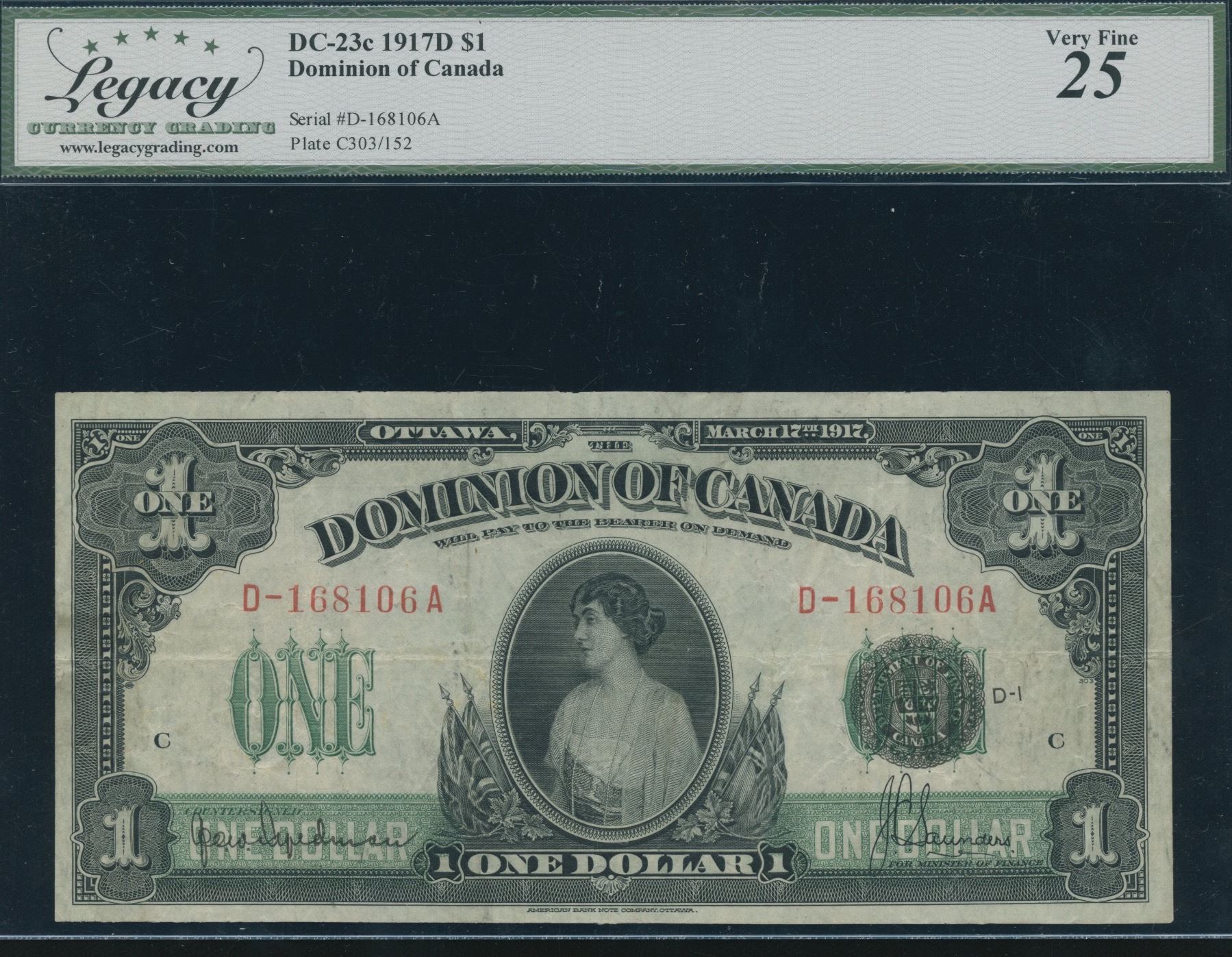 DC-23c. Legacy Very Fine 25, little rust stain on back. S/N: D-168106A/C.