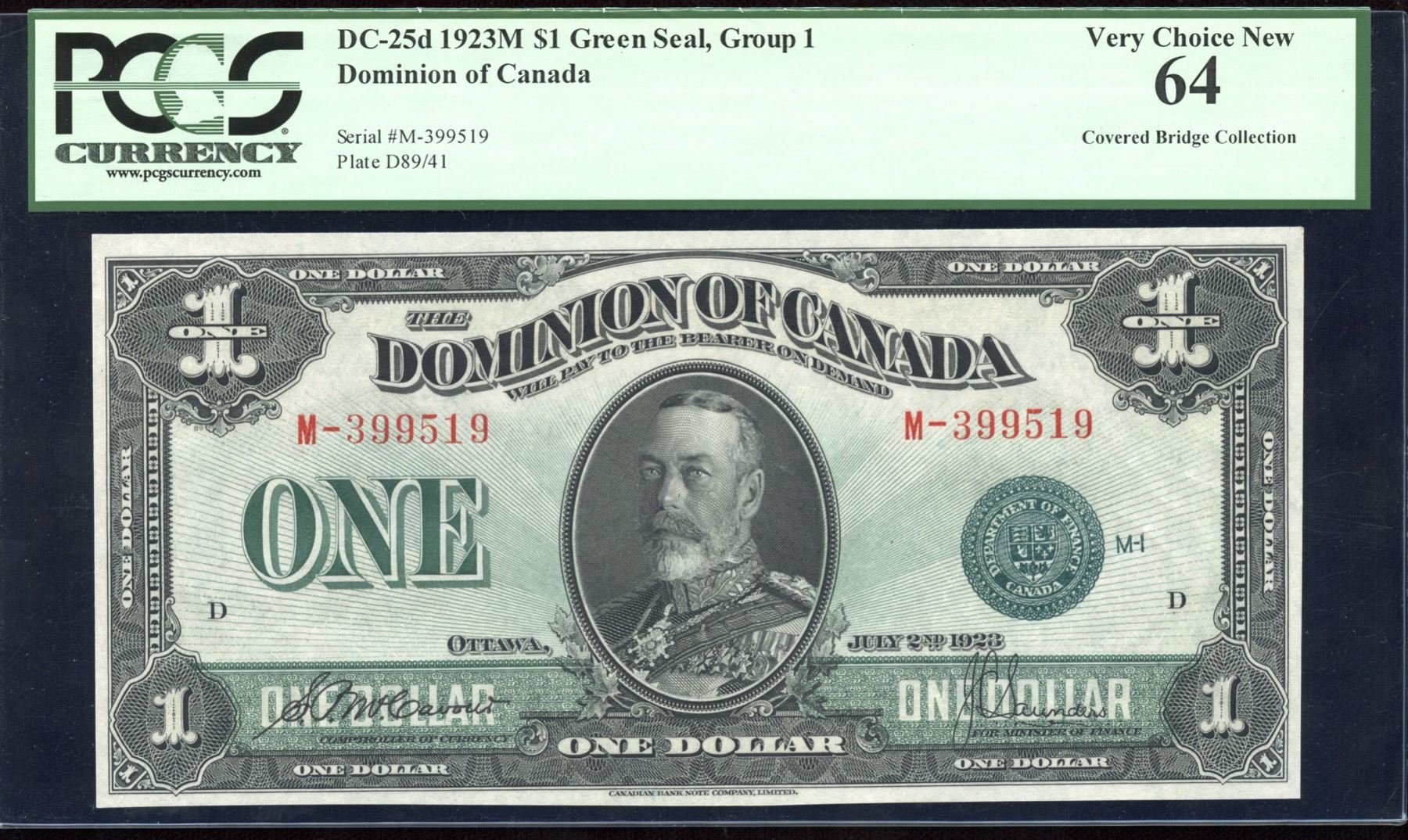 DC-25d. PCGS Very Choice New 64, Group 1. From the Covered Bridge Collection. S/N: M-399519/D.