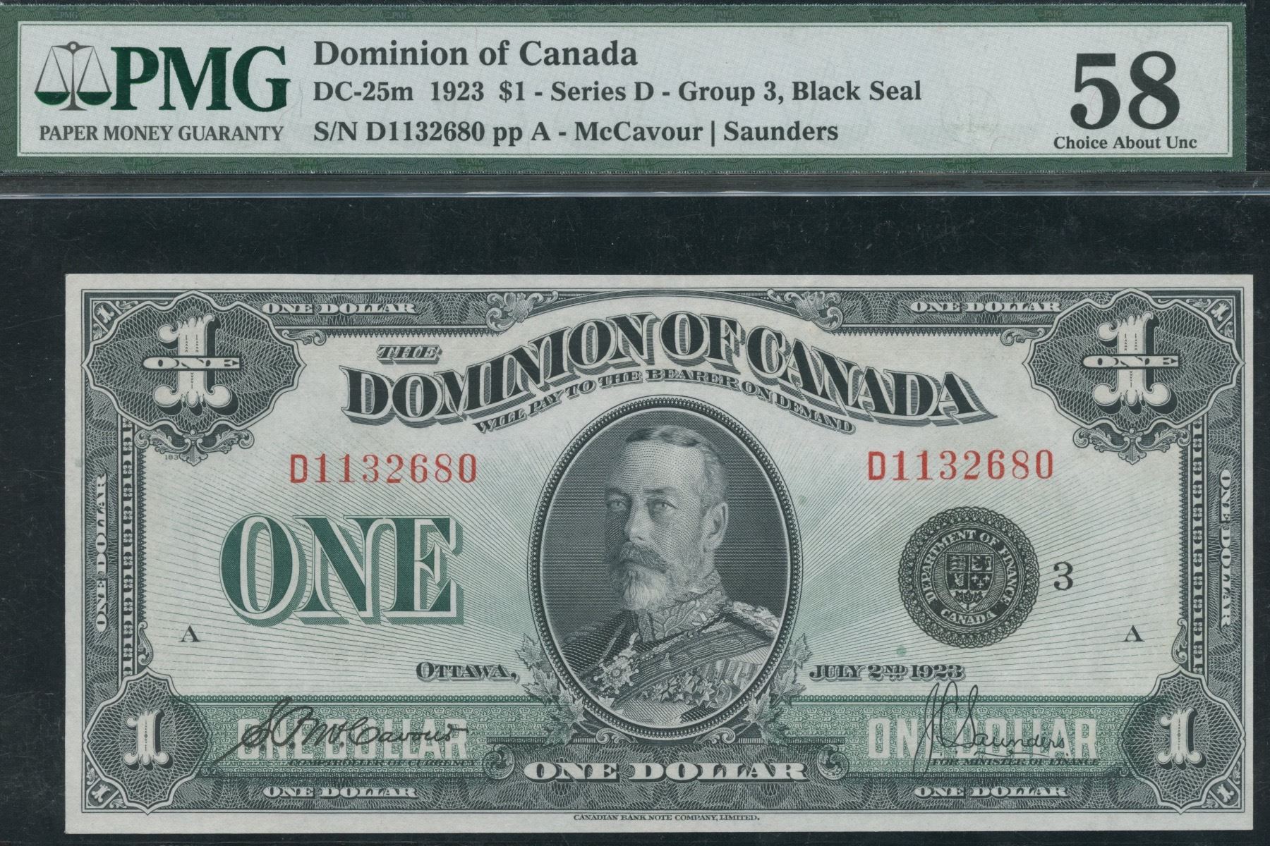 DC-25m. PMG Choice AU58. McCavour-Saunders, Black Seal, Group 3. S/N: D1132680/A.
