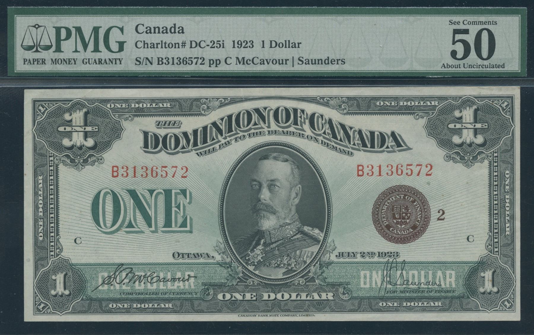 DC-25i. PMG AU50, small tear at top margin. Bronze Seal, Group 2. S/N:B3136572/C.