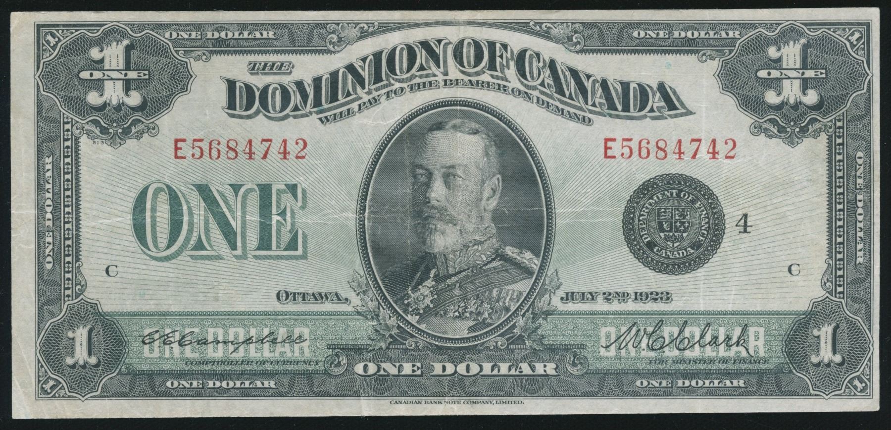 DC-25o. Pressed VF. Black Seal, Group 4. S/N:E5684742.