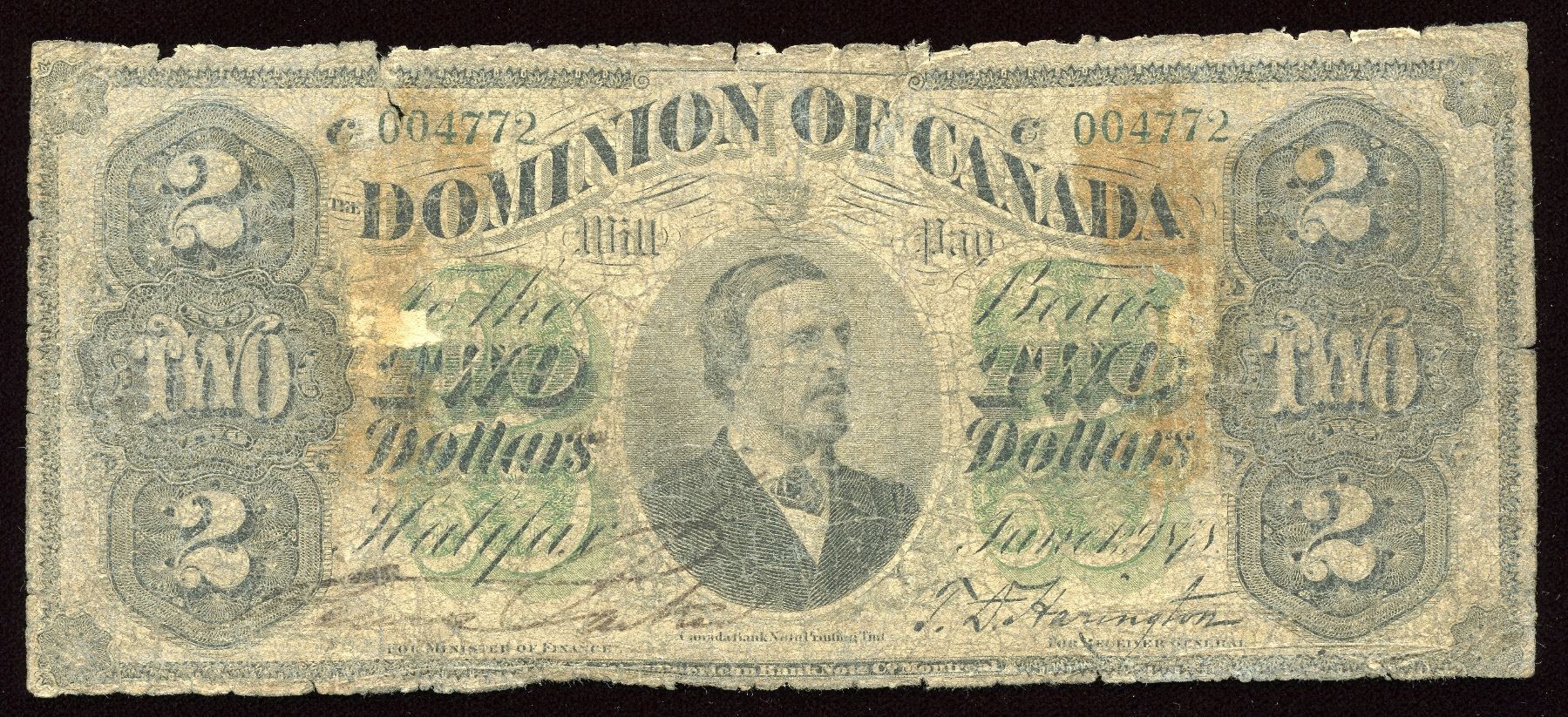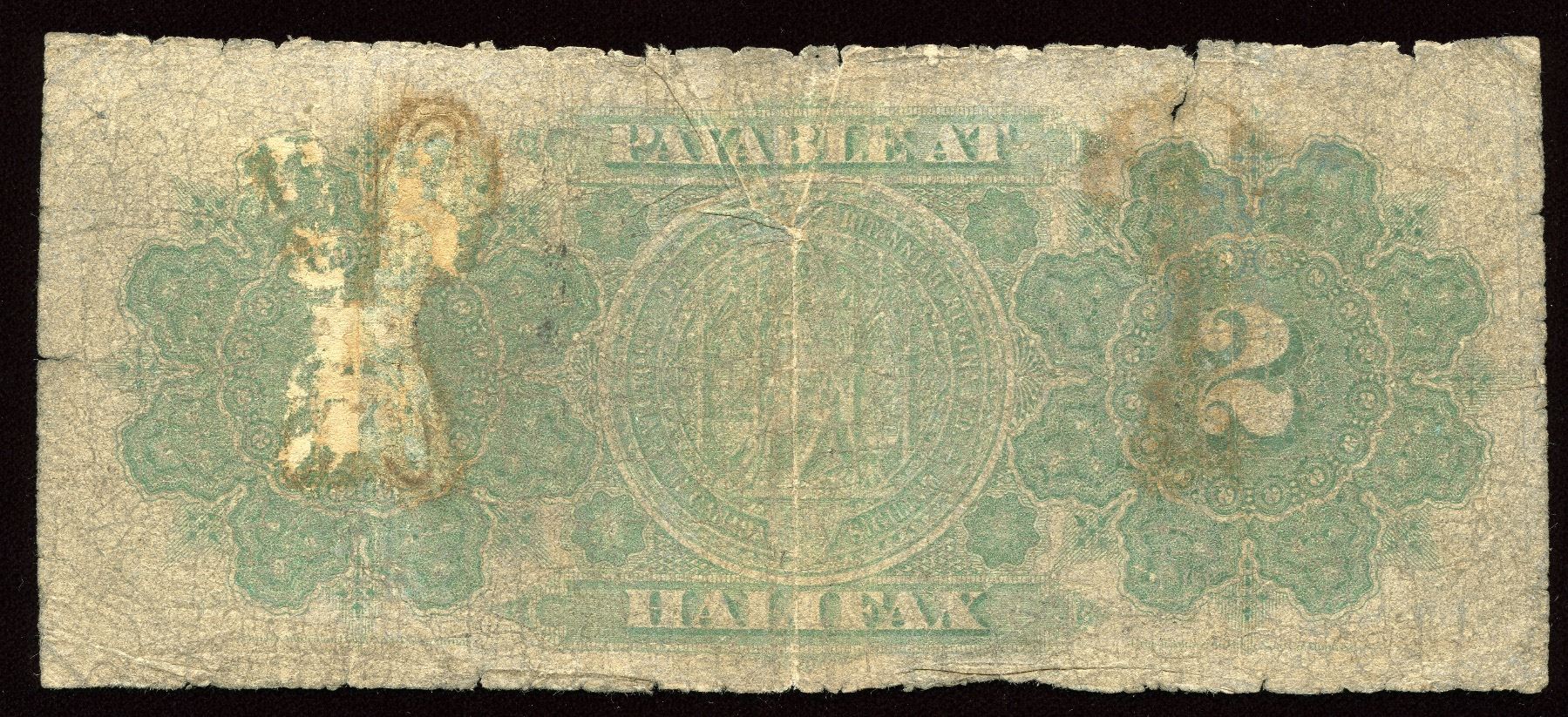DC-9d, Payable at Halifax. AG with damage on front and back, 5 known with 1 in institutional collection. S/N:C004772.