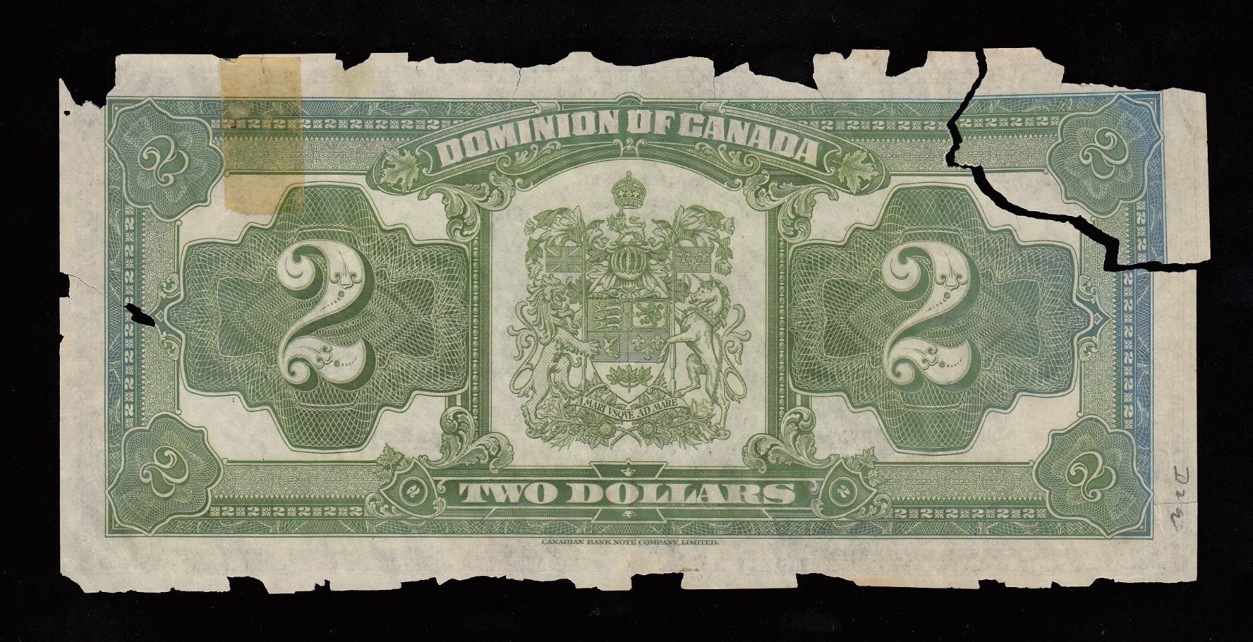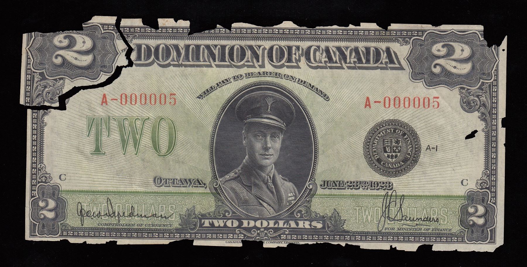 DC-26a, Damaged, in 2 pieces, however never circulated, low serial number. S/N:A-000005/C.