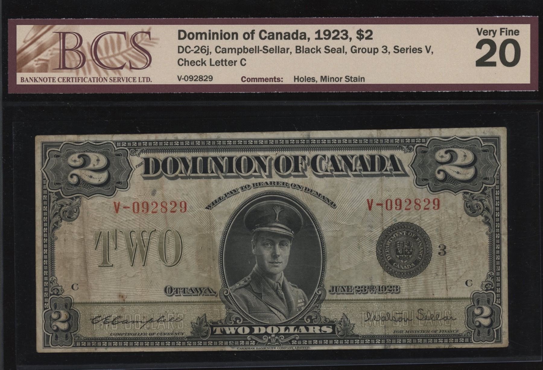 DC-26j. BCS VF20, holes, minor stain. Black Seal, Group 3, Series V. S/N: V-092829.