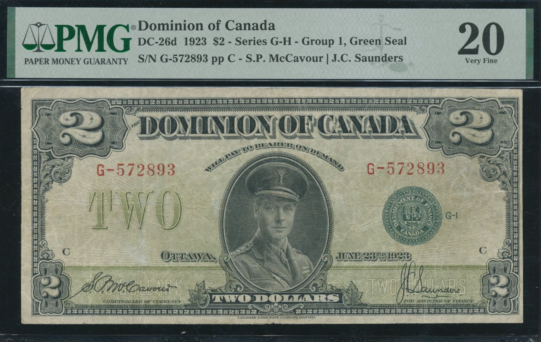 DC-26d. PMG Very Fine 20. Green Seal, Group 1. S/N:G-572893.