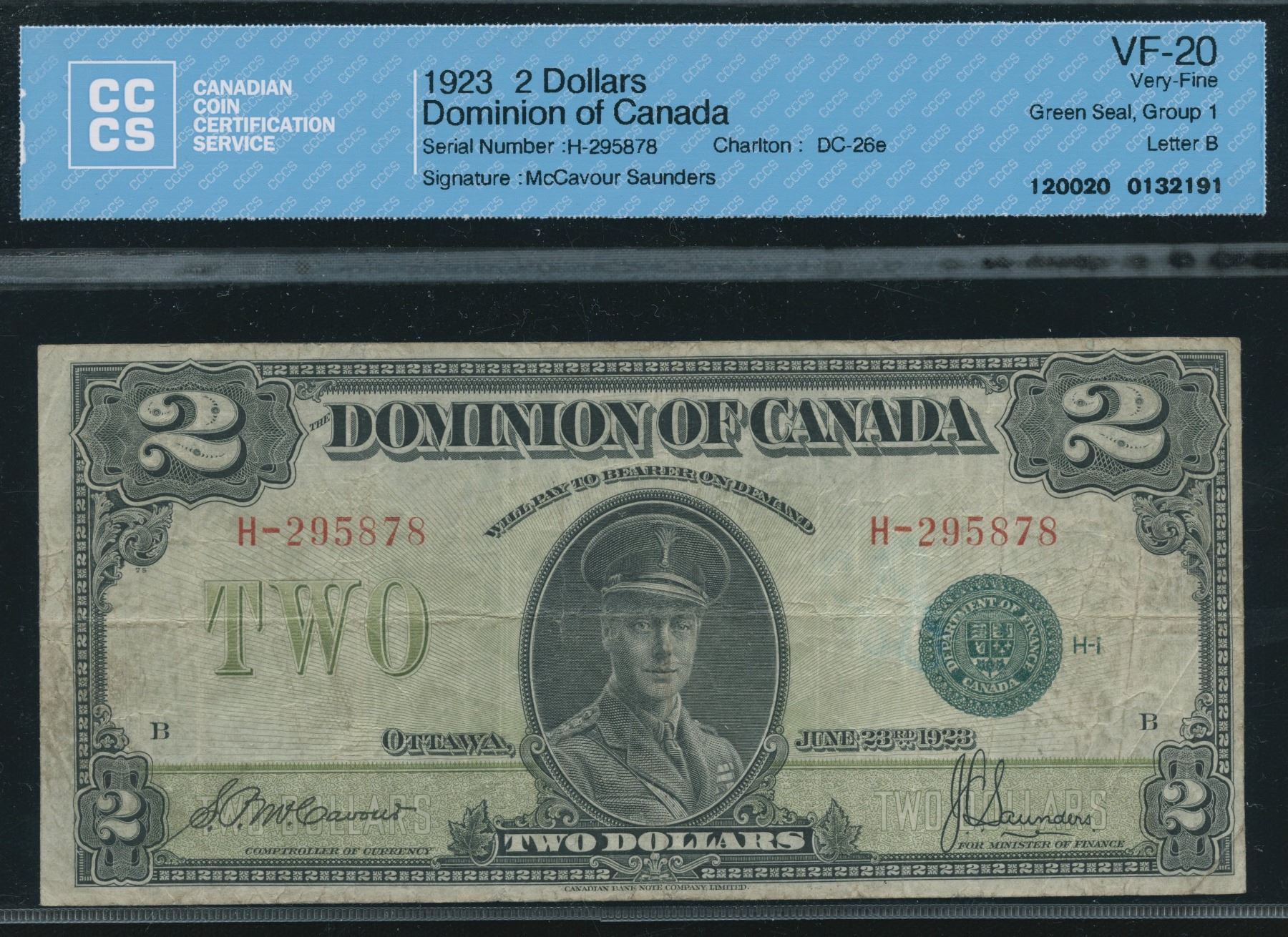 DC-26e. CCCS Very Fine 20. Green Seal, Group 1. S/N:H-295878/B