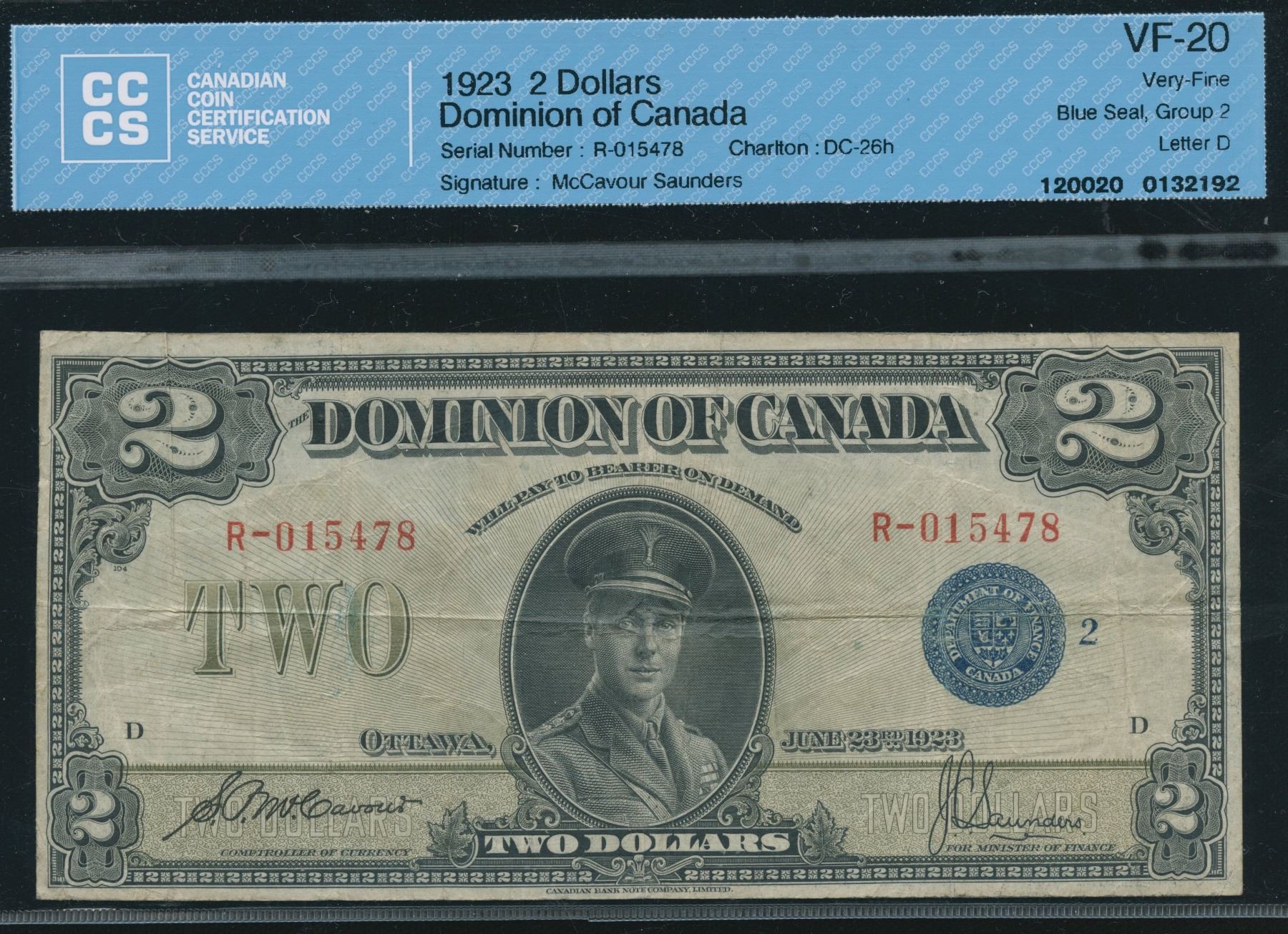 DC-26h. CCCS Very Fine 20. Blue Seal, Group 2. S/N:R-015478/D.