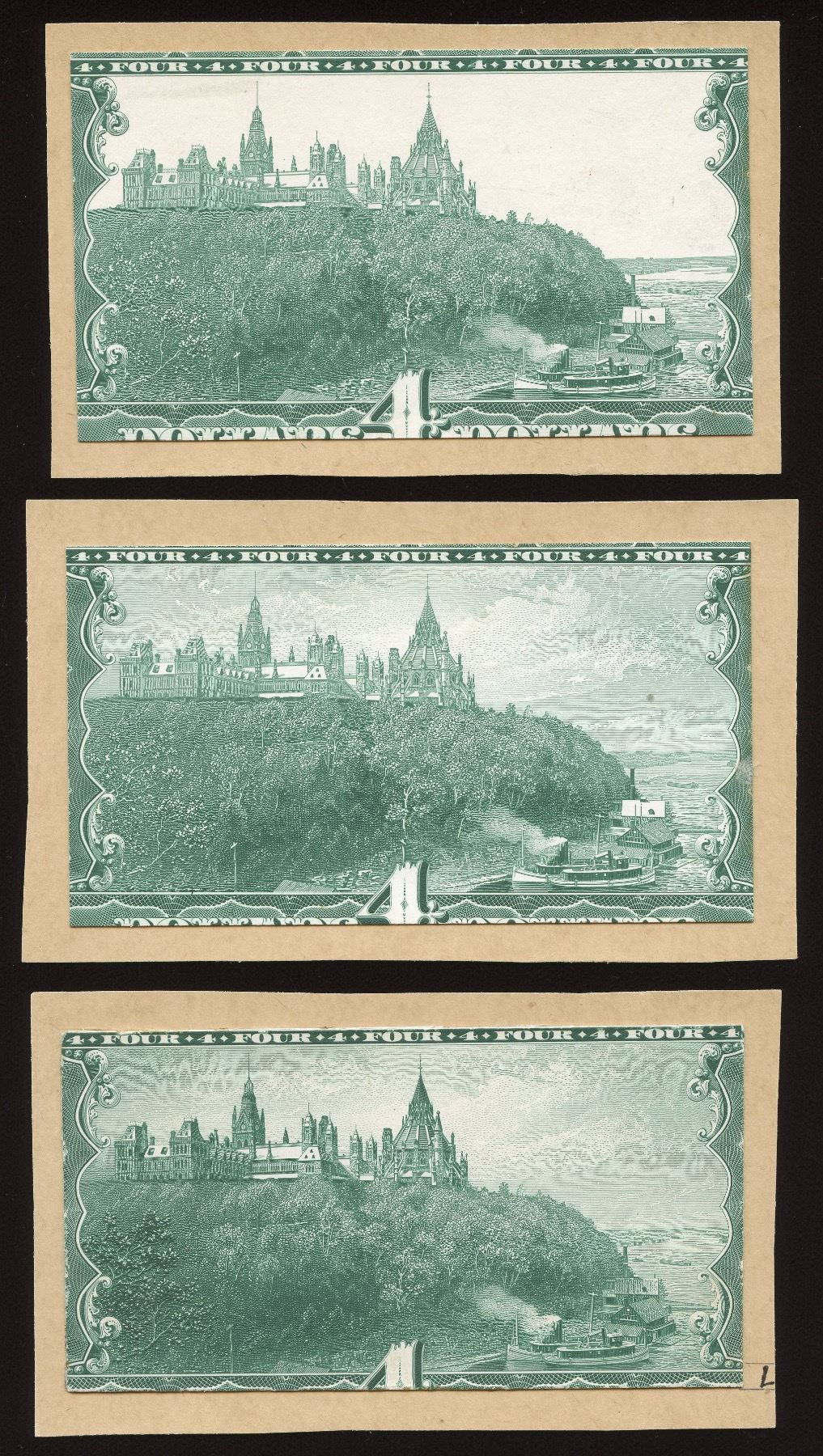Placed on cardboard backing. Trimmed to centre vignette. All have different shading and likely unique. 3 Pcs.