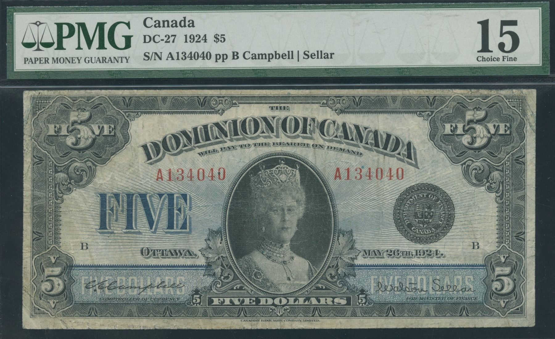 DC-27. PMG Fine 15. Popular Queen Mary Note. S/N:A134040/B.