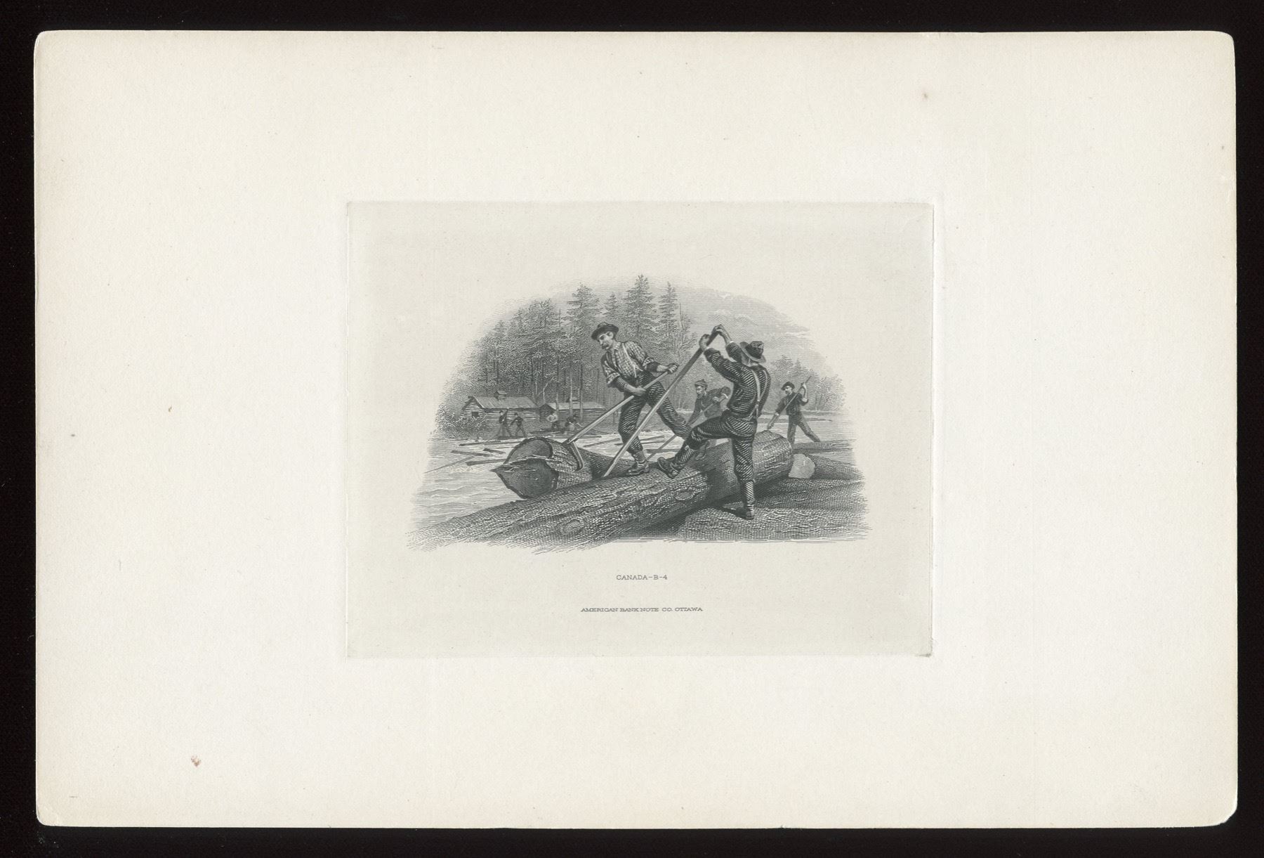 Dominion of Canada, DC-12 and DC-13, die proof vignettes on full card, Canada A-3 and B-4, both in very nice condition. Earl of Aberdeen and log drive. Regrettably Lady Aberdeen is absent, but see the next lot!