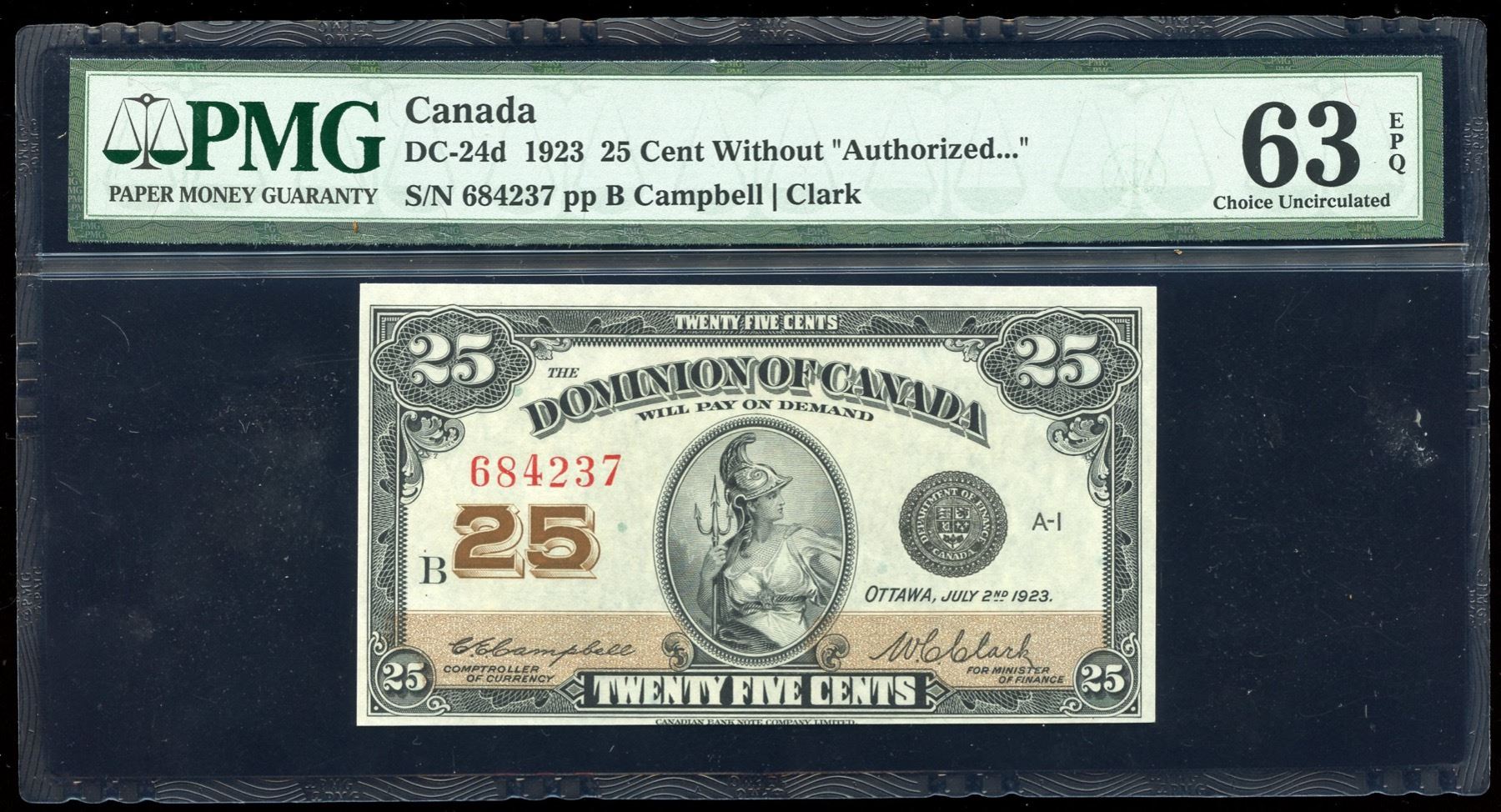 DC-24d. PMG Choice Unc. 63 EPQ. S/N: 684237/B.