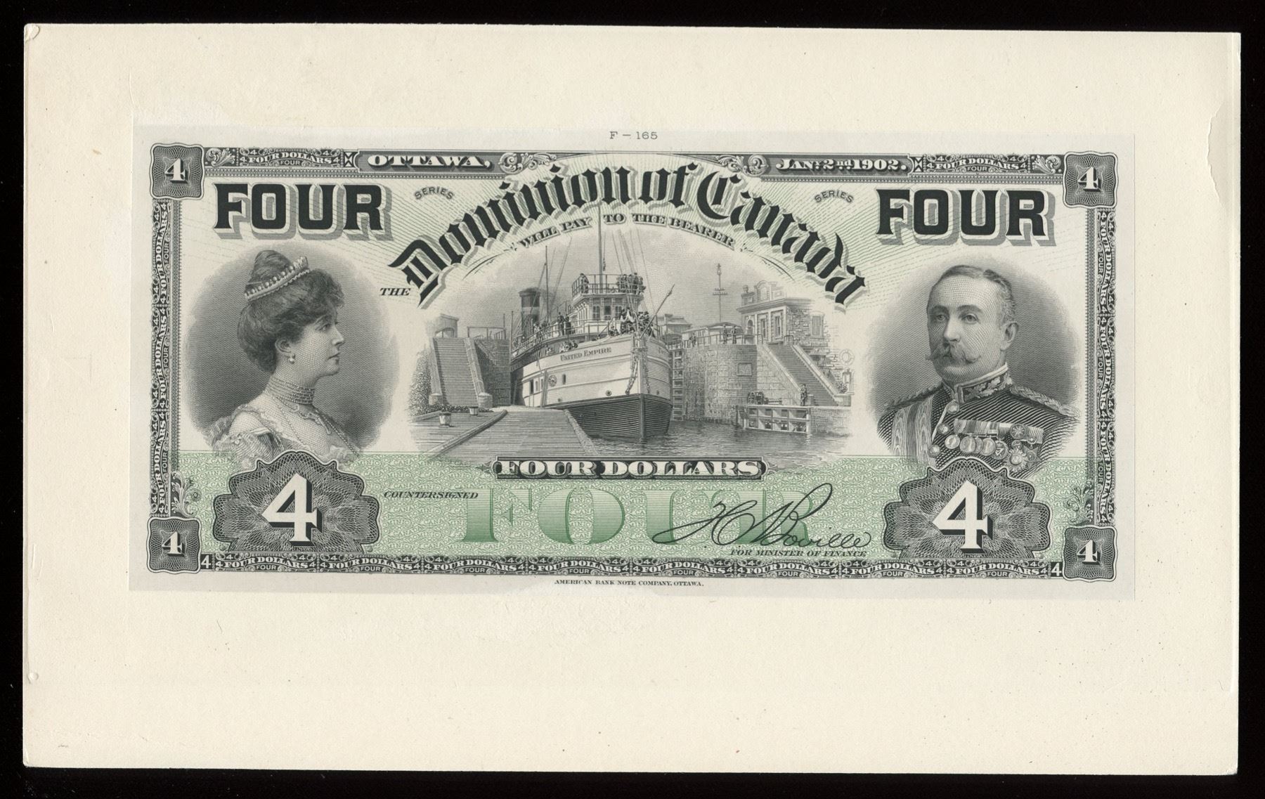 Dominion of Canada, DC-17bFP, $4 1902 Boville, face proof with tint, on card, pristine.