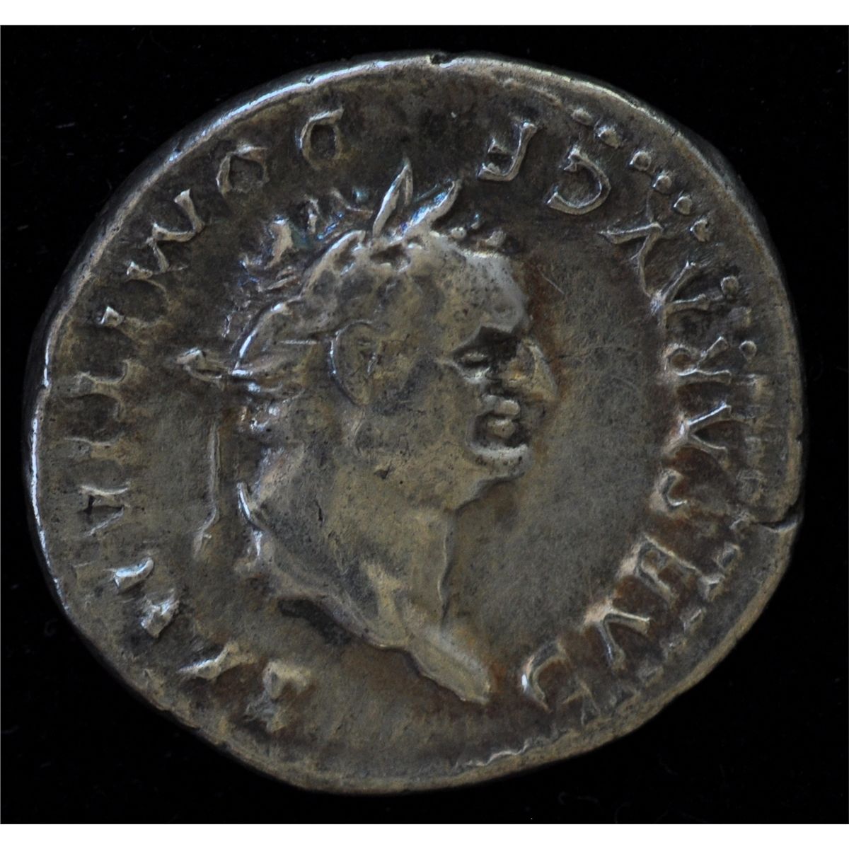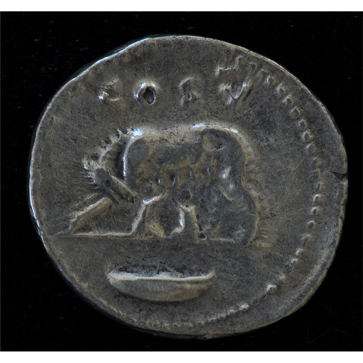 Domitian (81-96 AD) - AR-Denarius Rome 77-78 AD. As Caesar under Titus. Obv: Laur. hd. r. CAESAR AVG F DOMITIANVS Rev: Wolf and twins COS V 3.4 grams. S-2639. VF.