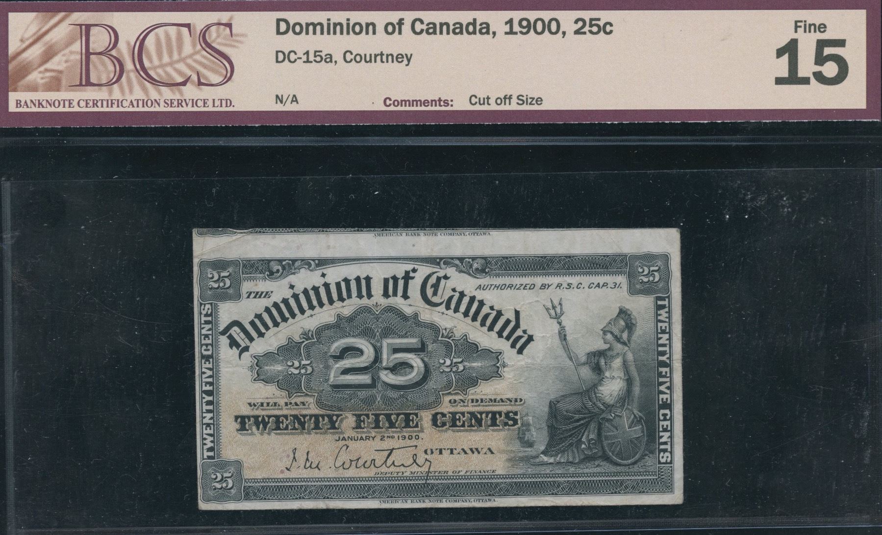 ERROR, DC-15a, Courtney, BCS Fine 15, Cut off Size showing a portion on the top note.