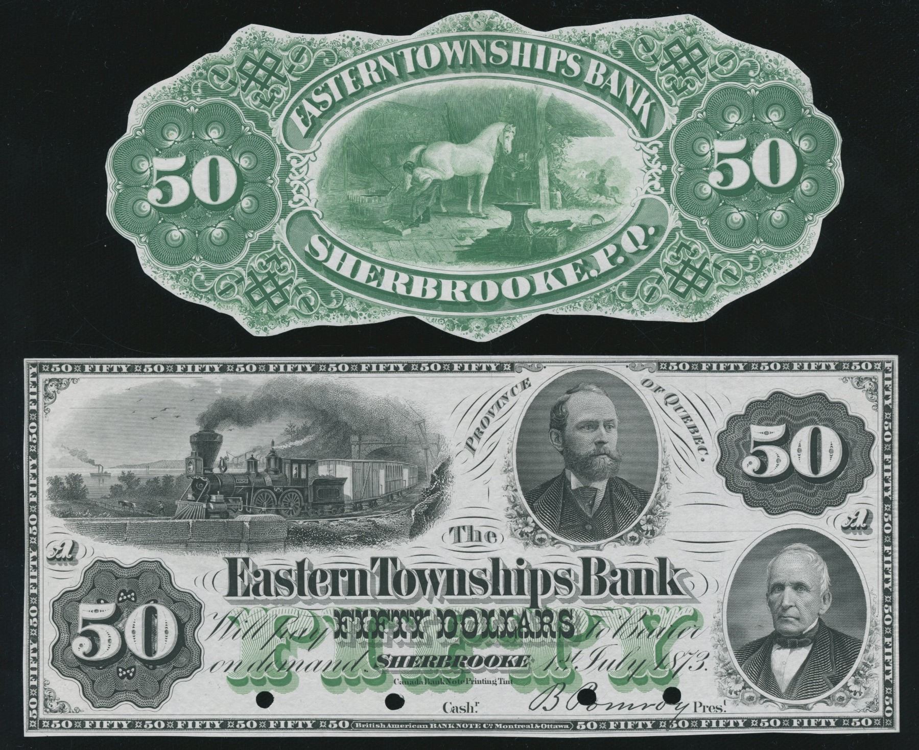 Eastern Townships Bank $50, 1873 - Front & Back Proofs