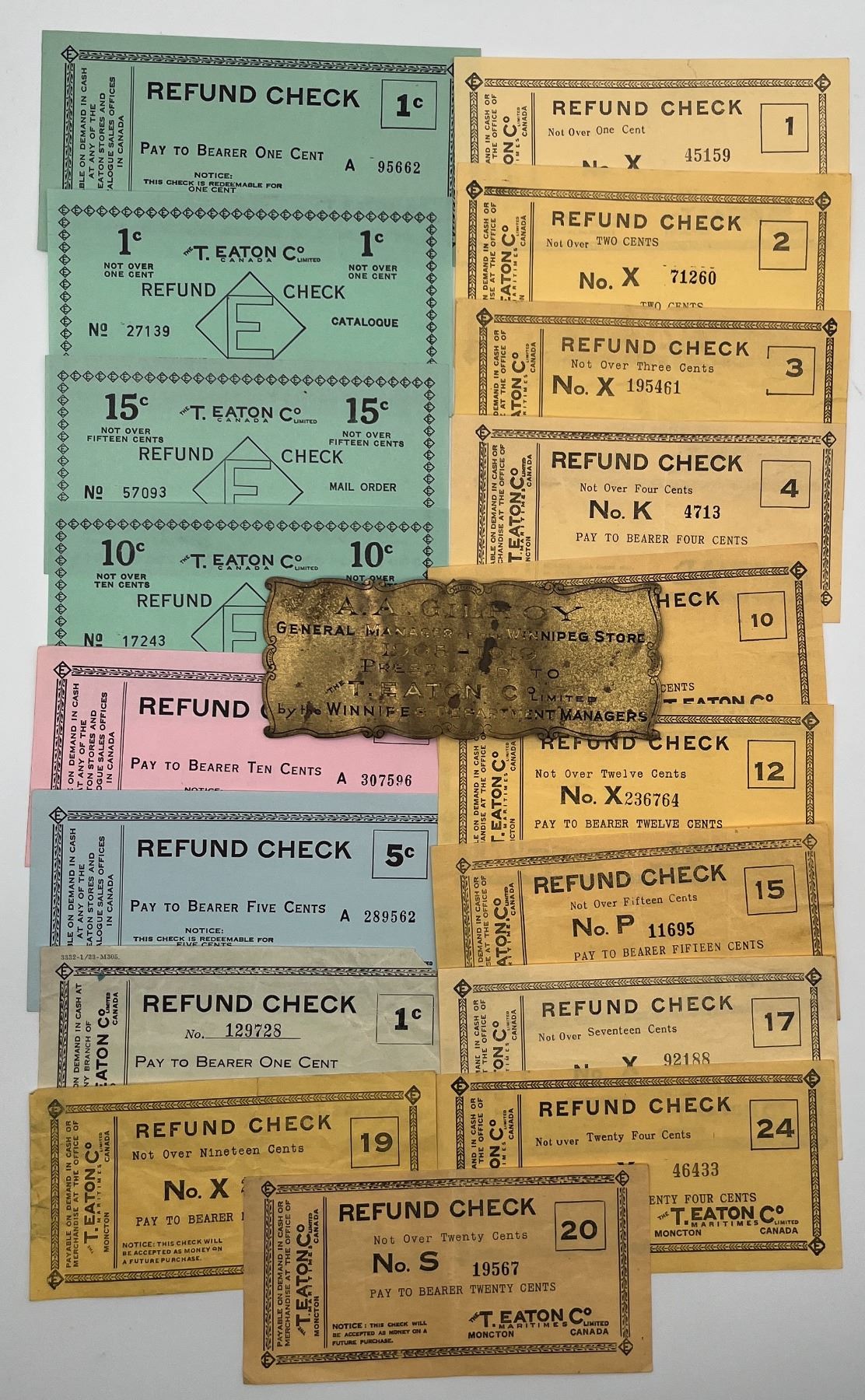 Eaton's Scrip - Lot of 18, Plus Rare Winnipeg Store Managers Plaque