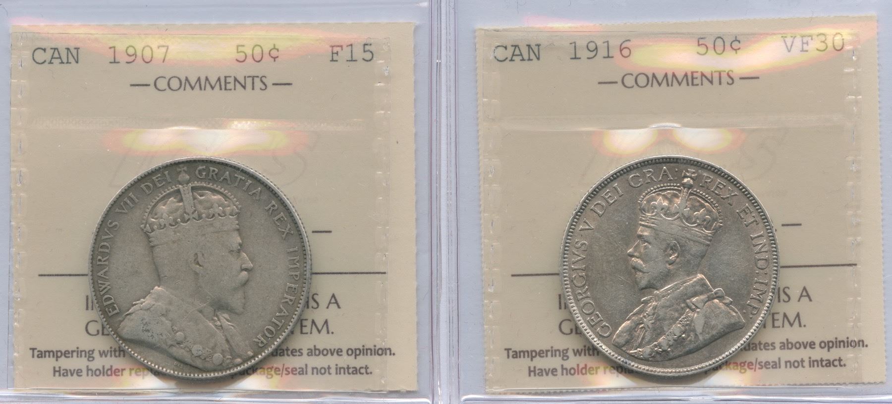 1907 ICCS F15 || 1916 ICCS VF30 - Some mint lustre can still be seen on both sides. 2 Pcs.