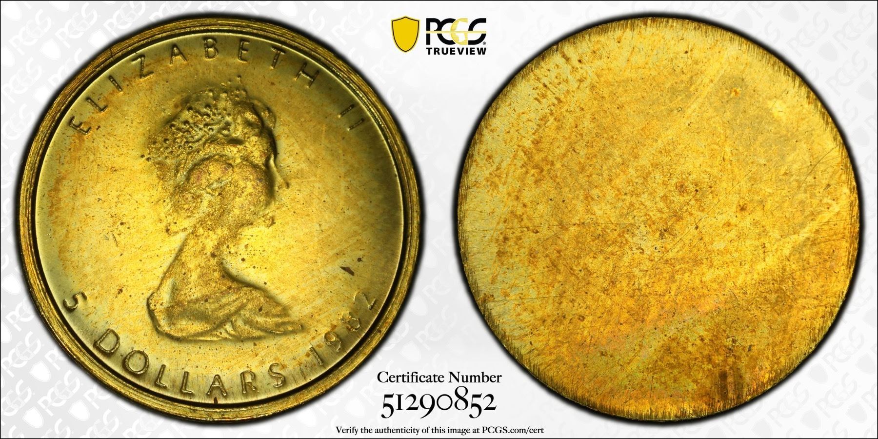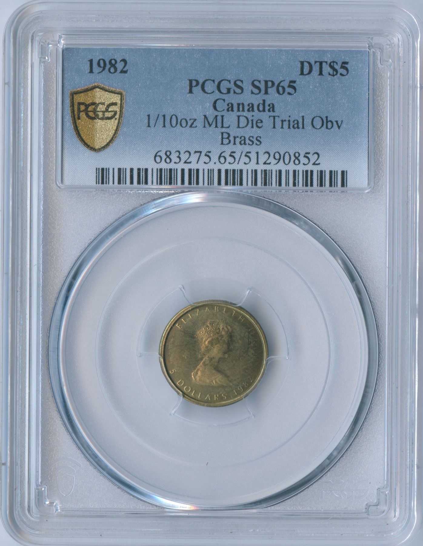 Elizabeth II "Portrait" $5 Dollars (1/10 oz) 1982 PCGS SP65,†issued by The Royal Canadian Mint. KM135. Obverse trial.