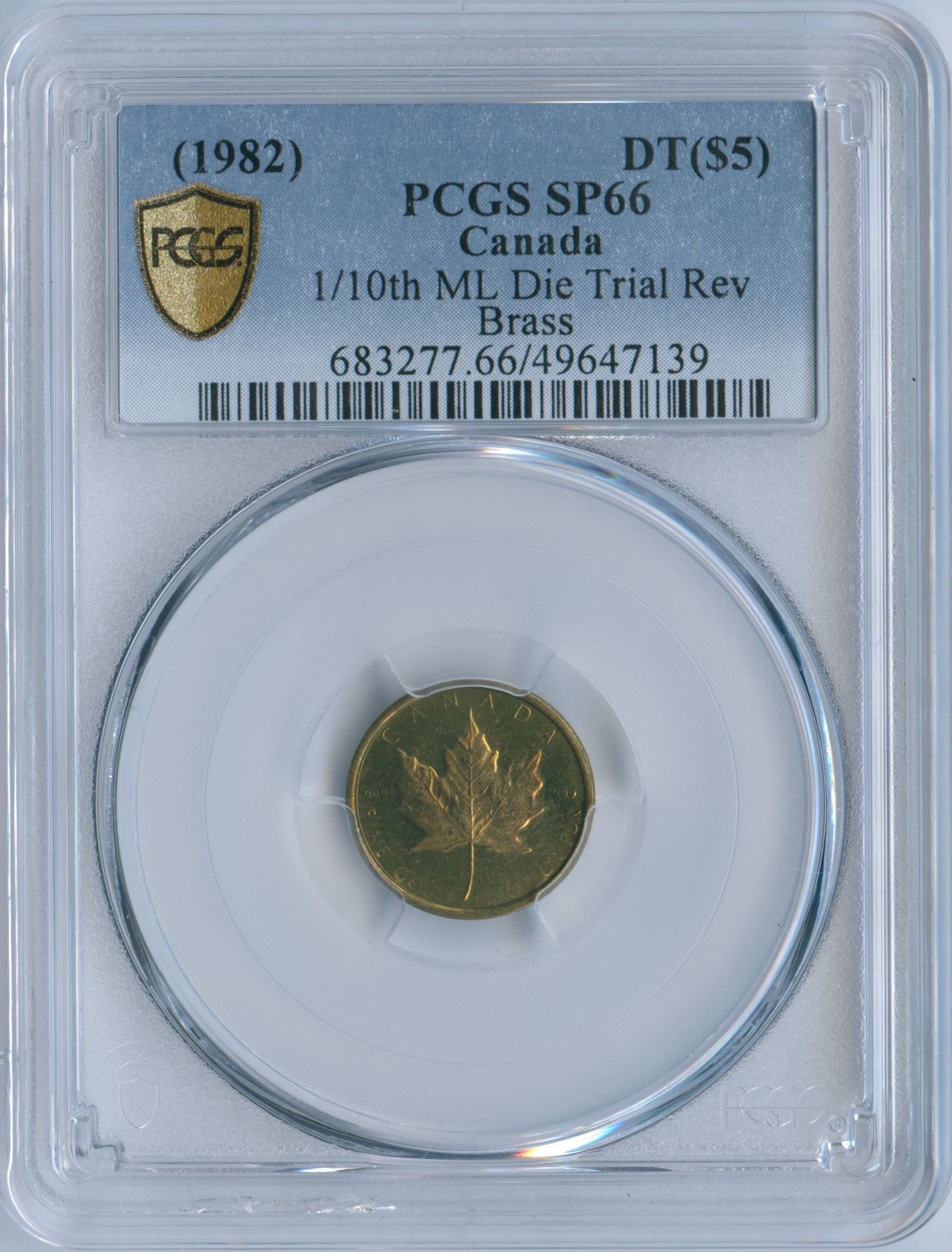 Maple Leaf $5 Dollars (1/10 oz) ND (1982) PCGS SP66,†issued by The Royal Canadian Mint. KM135. Reverse trial.