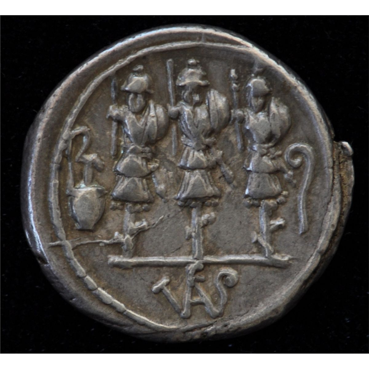 Faustus Cornelius Sulla (56 BC) - AR-Denarius Obv: Laud. Diad. and dr. bust of Venus r., scepter over shoulder, S C behind head. Rev: Three trophies beween jug and lituus, monogram of FAVSTVS in ex. 4.0 grams S-386 Craw 426-3 Toned EF.