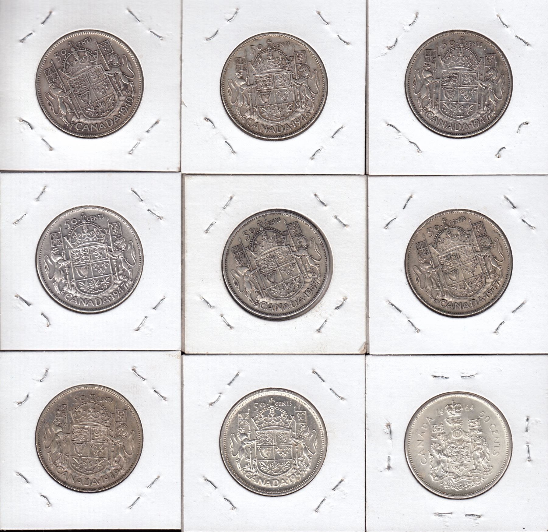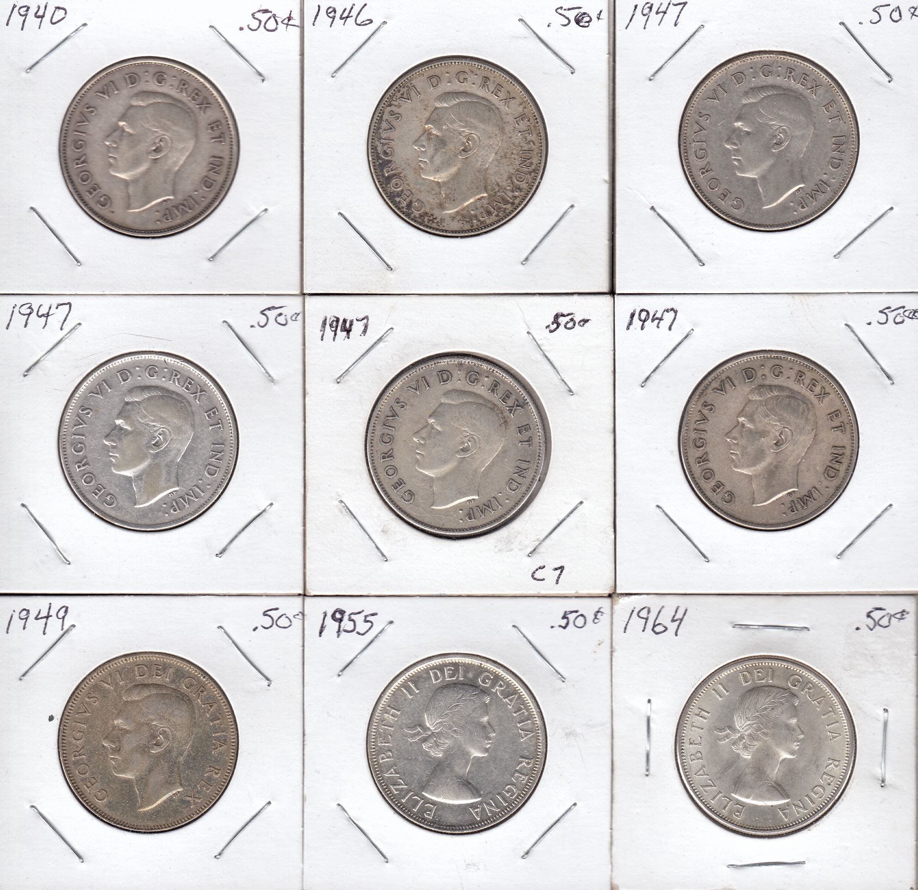 Dates include: 1940, 1946, 1947 (x4), 1949, 1955, 1964. 9 Pcs.
