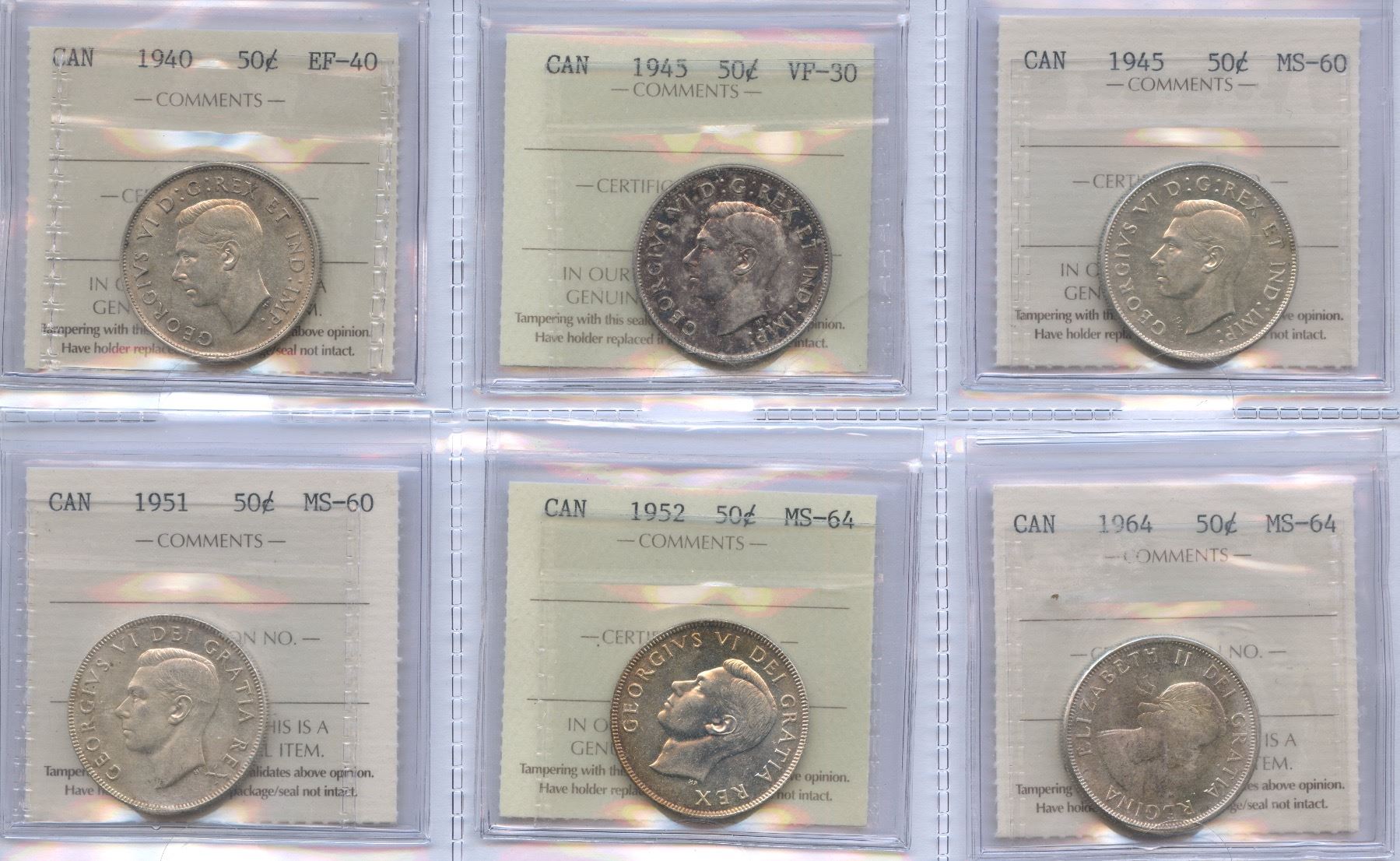 Includes: 1940 EF-40. 1945 VF-30 & MS-60. 1951 MS-60. 1952 MS-64. 1964 MS-64. 6 Pcs.