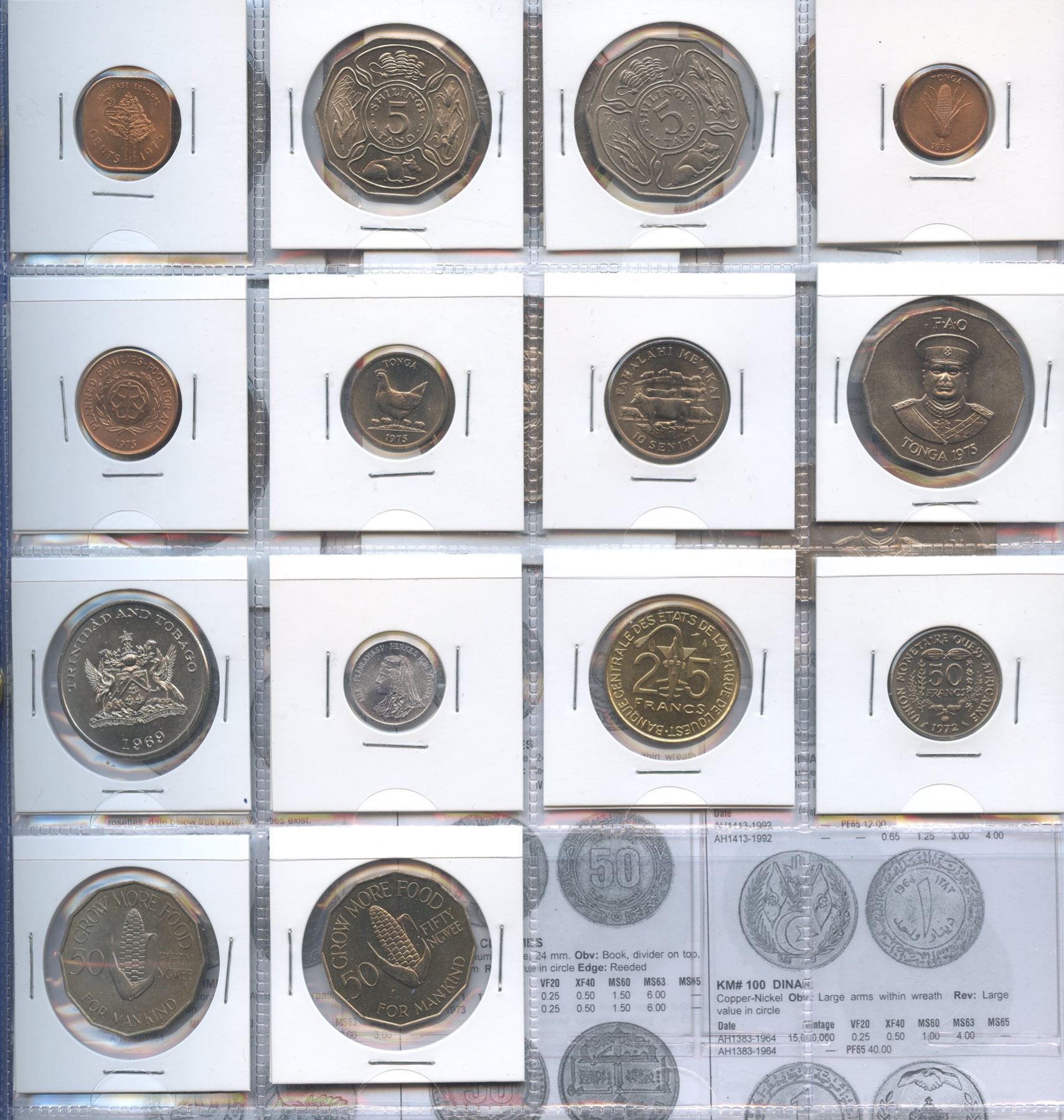 Nice diverse selection perfectly arranged in folder with educational information. Includes 40 coins from Algeria to Tonga.