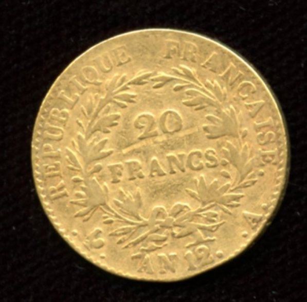 France 20 Francs gold, Napoléon I, AN 12-A (1802-1804), F-15 grade