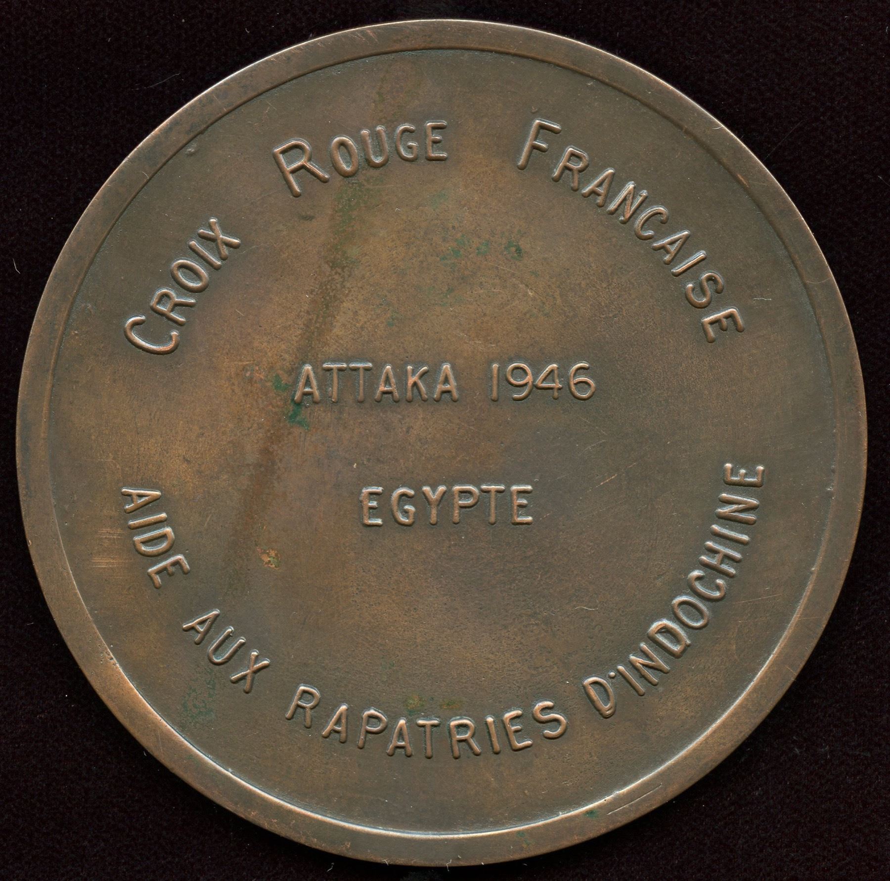 Rare Egypt-France bronze specimen, 86mm, of the Repatriation of French refugees by the Red Cross from French Indo China (Viet Nam) to Attaka, Egypt in 1946.