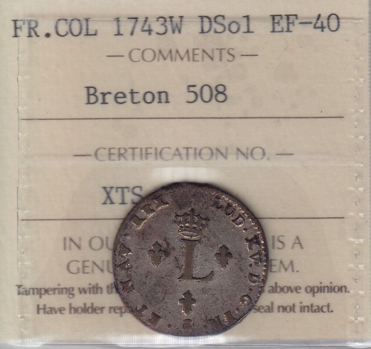 French Colonies - Br 508. Billion Double Sol of 24 Deniers. 1743 W. (Lille).Vlack 204. R3. ICCS EF-40.