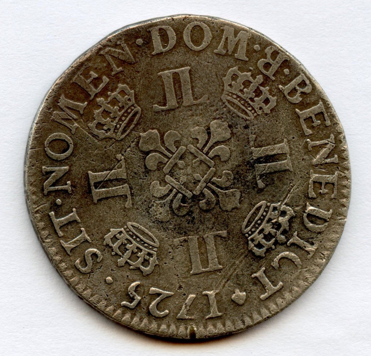 aux 8 L, Louis XV, 1725B, G & D 312, Fine, some surface marks, including adjustment marks, but a very scarce coin.